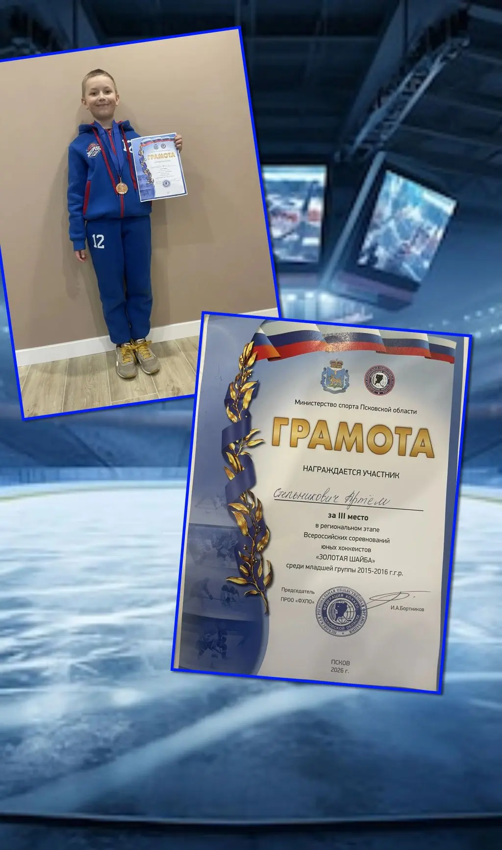 Поздравляем ученика 3 "А" класса Стельниковича Артема с завоеванием 3 места в соревнованиях «Золотая Шайба» среди ребят 2015-2016 гг. рождения. ❄️ Желаем ему дальнейших побед, новых достижений и ярких моментов на ледовых аренах! ✨