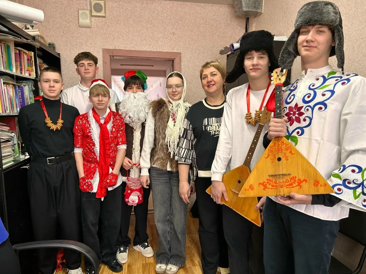 Колядование – это многовековая традиция, которой следуют не только на Рождество, но и в дни Святок, с 6 по 18 января. Поэтому ребята из 10 «Б» класса, вместе с классным руководителем Пименовой Еленой Михайловной, решили проводить Старый Новый Год под колядки А отзывчивые учителя не оставили ребят без конфет.