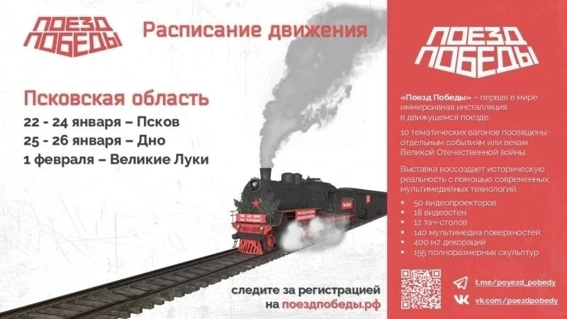⚡️ Уникальный музей «Поезд Победы» снова посетит Псковскую область