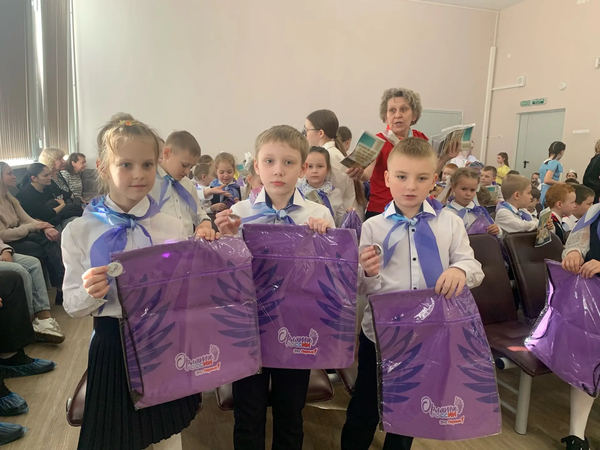 В завершение праздника, наши первоклассники получили заслуженные подарки: красивые закладки для книг, удобные мешки для обуви и, конечно же, значки «Орлята России», символизирующие их принадлежность к дружному и сильному сообществу.