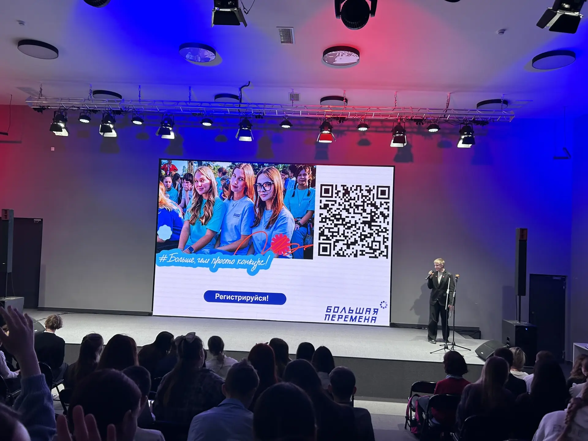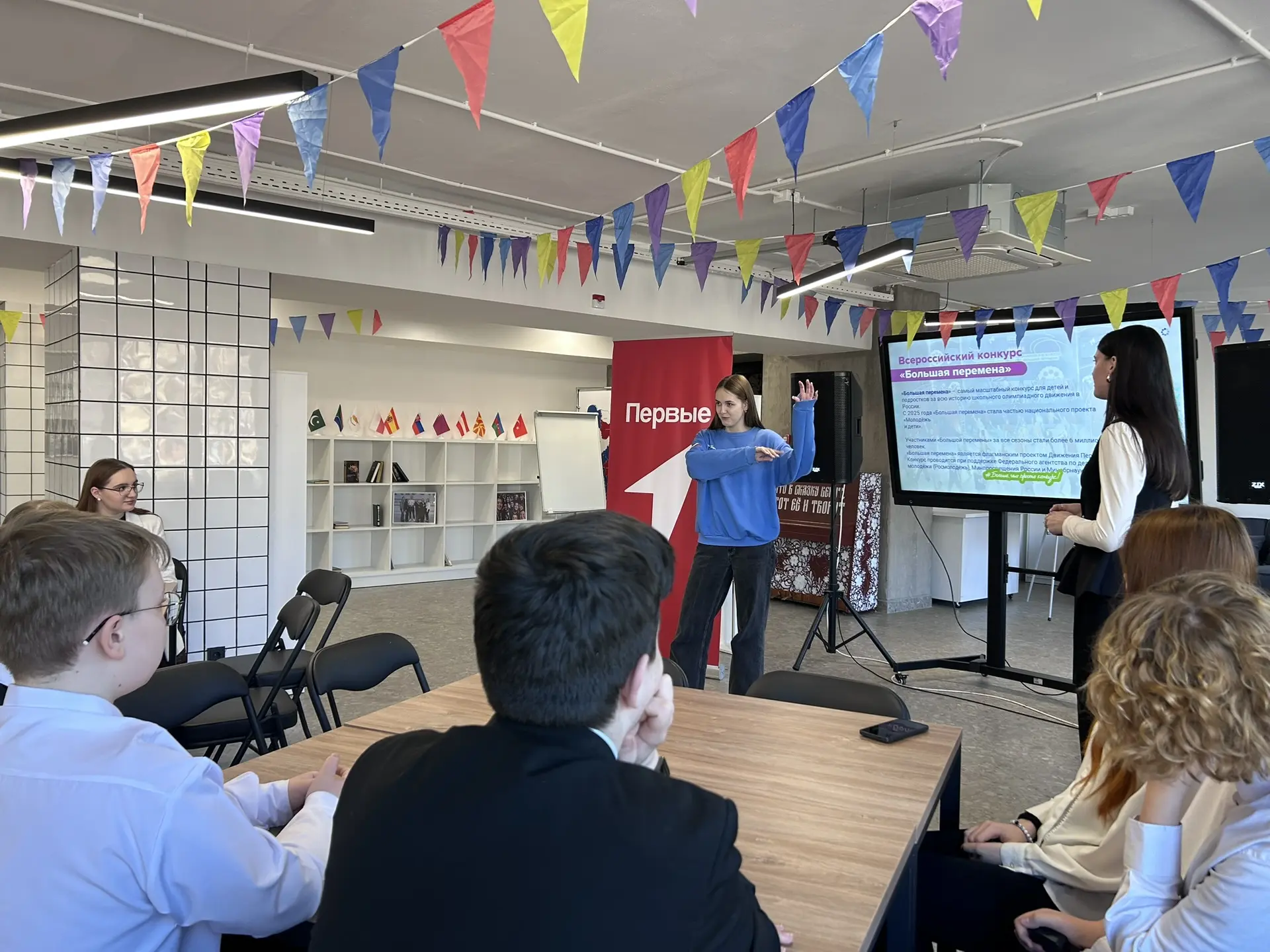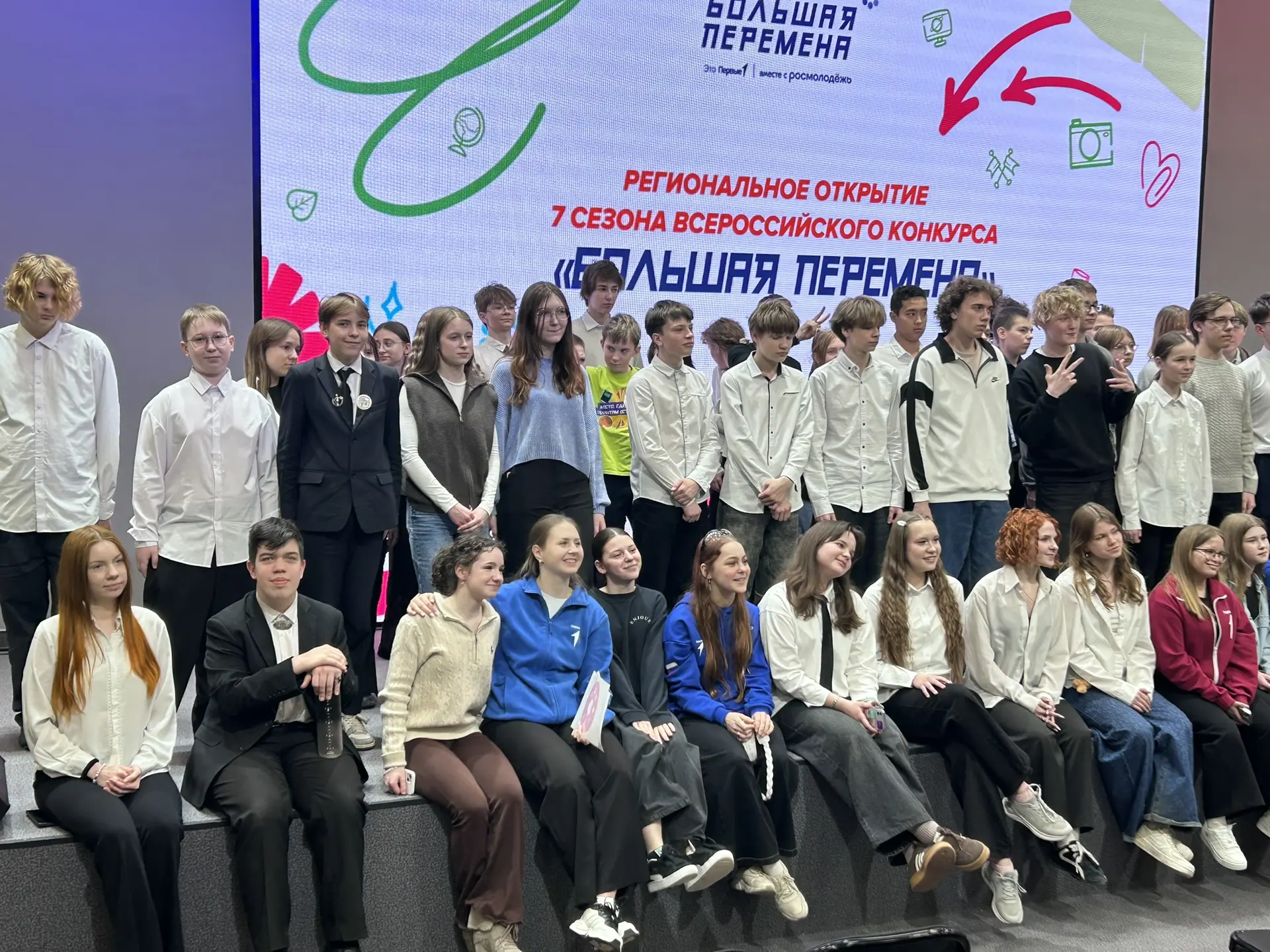 Сегодня учащиеся 8–9 классов вместе с советником директора по воспитанию приняли участие в региональном открытии 7 сезона Всероссийского конкурса «Большая перемена».