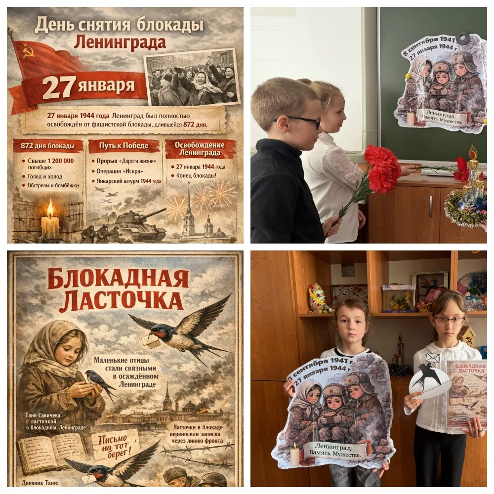 27 января 2026 года МБОУ Кагальницкая СОШ приняла участие в патриотической акции памяти «Блокадная ласточка», посвящённой освобождению Ленинграда от фашистской блокады. В рамках этой акции в школе прошли уроки памяти, конкурсы рисунков, поделок. Дети знакомились с одной из самых трагических и в то же время героических страниц истории Родины.