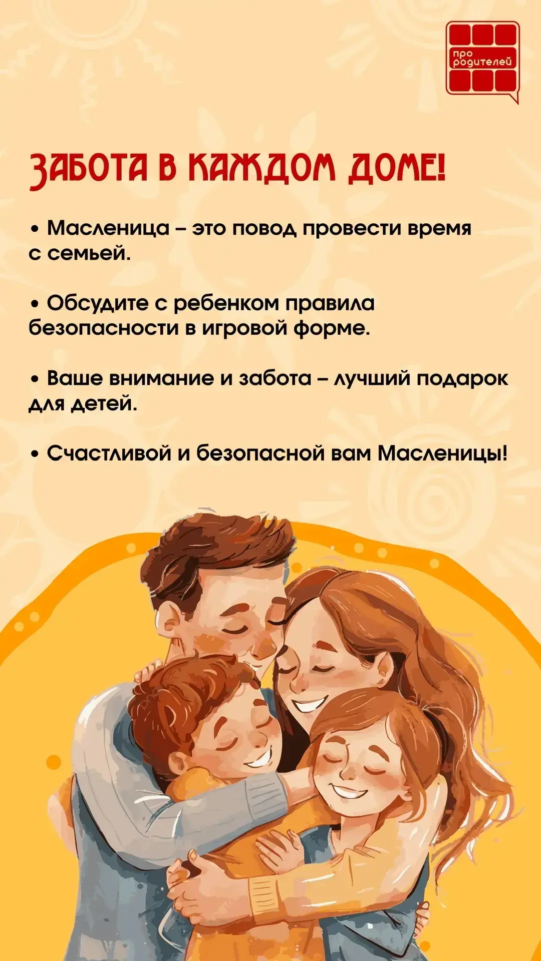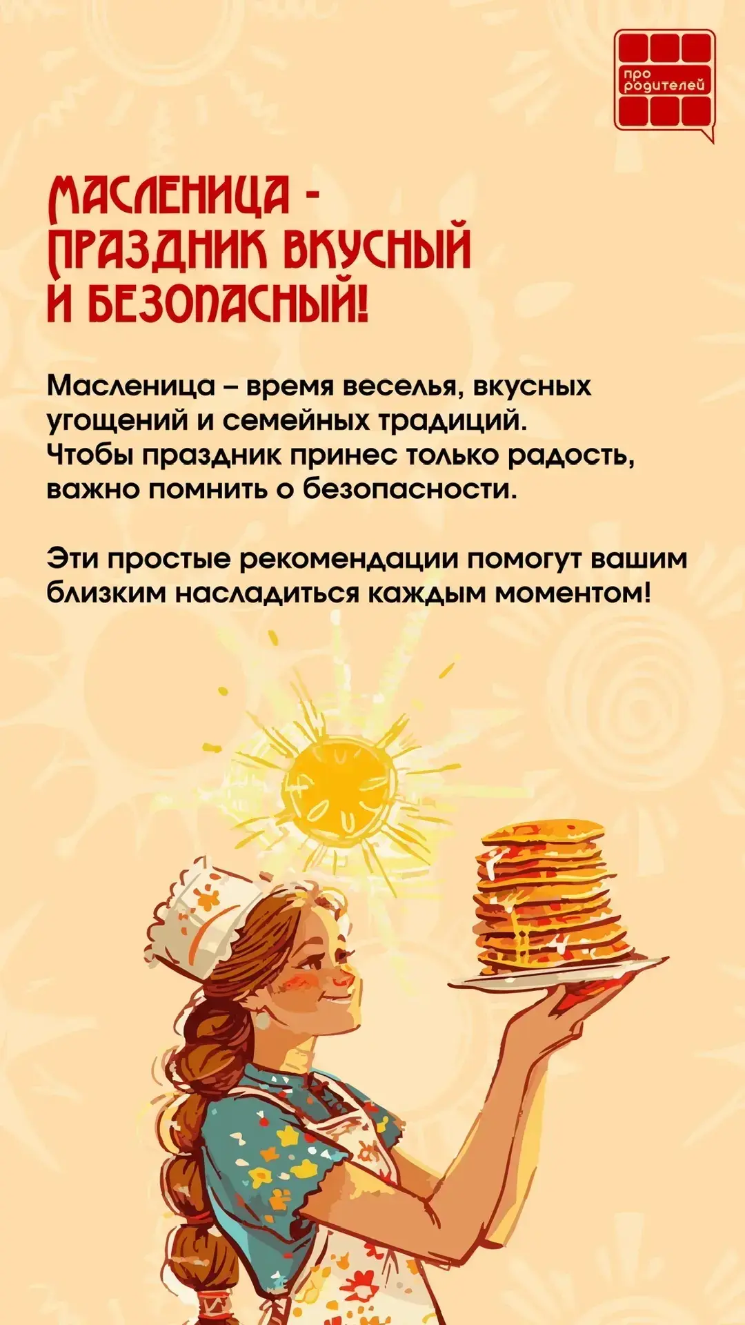 Масленица — это время, когда вся семья собирается вместе. Кругом румяные блины, народные гуляния, звонкие песни и добрые улыбки! В эти дни мы традиционно провожаем зиму и встречаем весну, и конечно, хочется разделить эту радость с близкими, особенно с самыми маленькими.