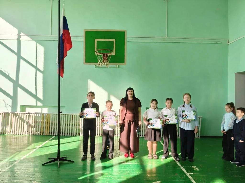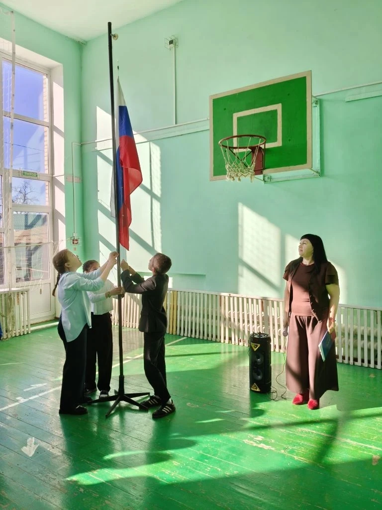 В честь победы на игре "Зарница" флаг поднимала Таштанова Зухра, командир отряда. В начальной школе флаг поднимали учащиеся 3а и 4в классов Хамидова Разия, Ковалева Юлия и Мамедов Юсуф, занявшие призовые места в итоговом событии трека «Орленок – Эколог» в игре «Полундра».