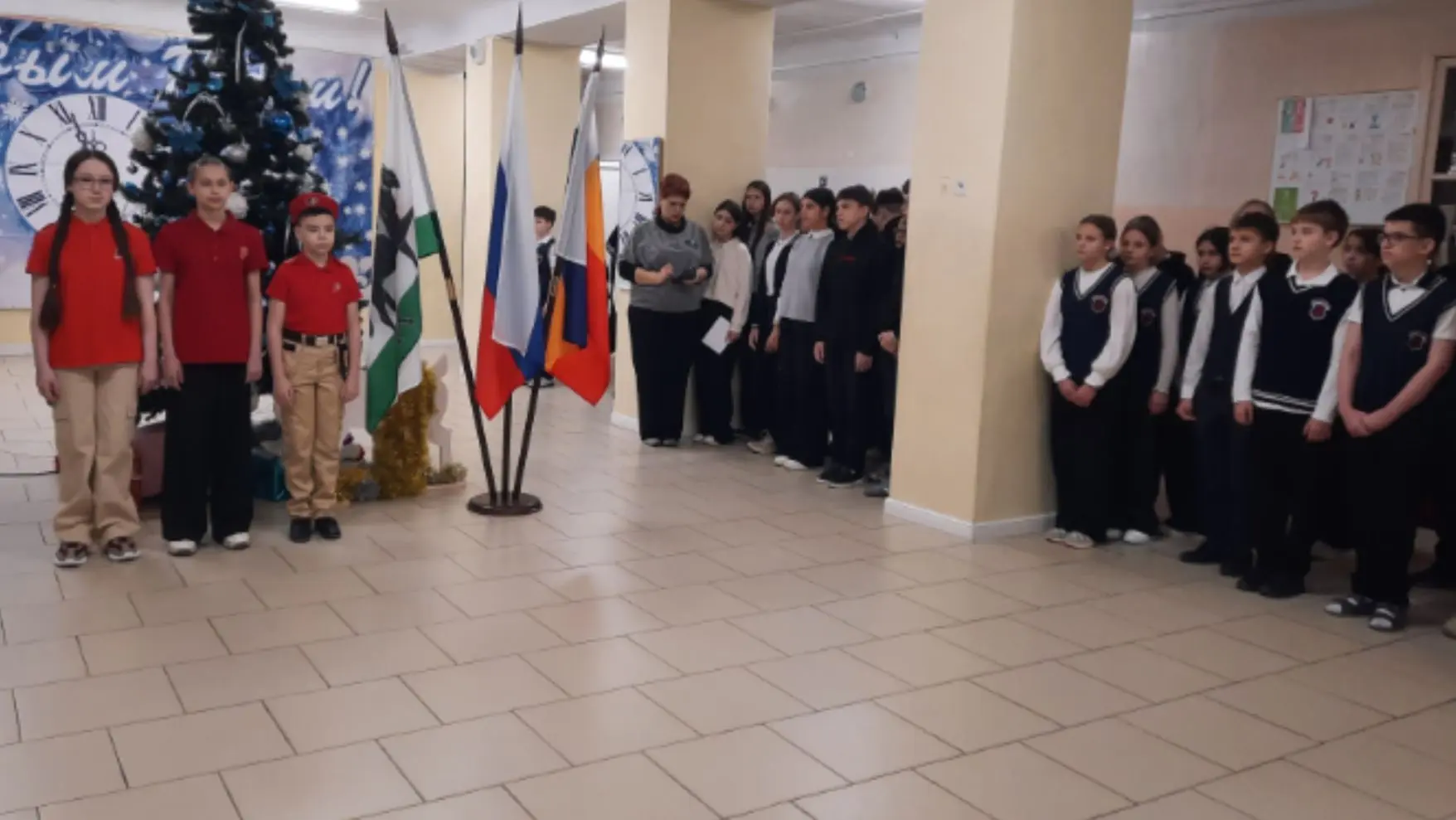 Утро понедельника в школе традиционно началось с торжественной линейки, посвященной началу третьей учебной четверти, церемонии выноса флага и исполнения гимна Российской Федерации🇷🇺