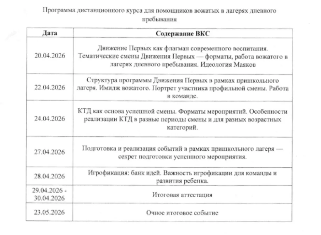 Смена: с 23 марта по 12 апреля 2026 года.