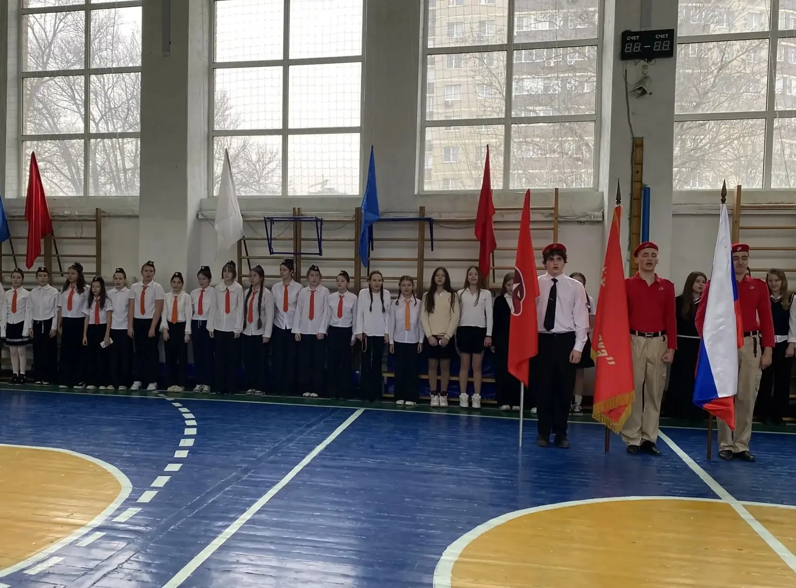 🇷🇺Традиционно неделя в школе началась с поднятия флага Российской Федерации и выноса Школьного Знамени.