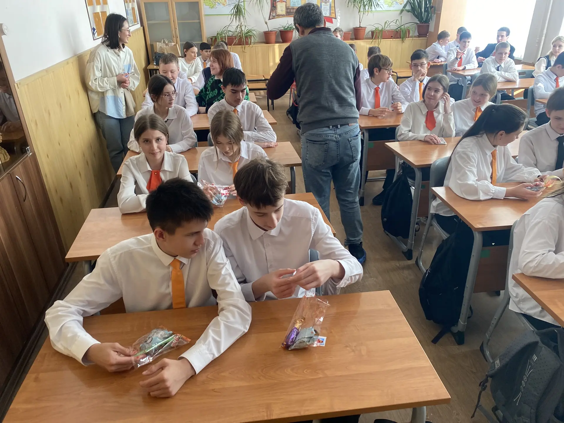 Советники директора по воспитанию Андрей Урушев и Владимир Компаниец совместно с представителем местного отделения «Движения Первых» Ириной Кривошлыковой организовали для учеников 1-11 классов настоящий праздник — акцию по книгообмену и книгодарению.