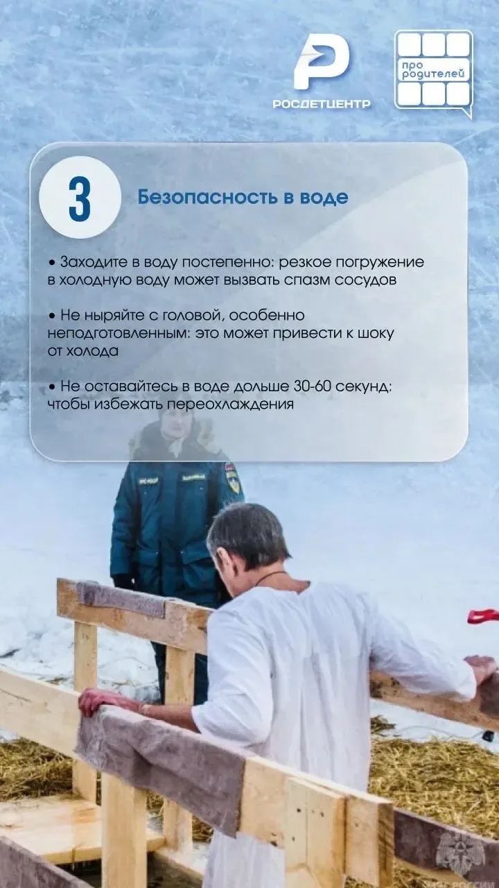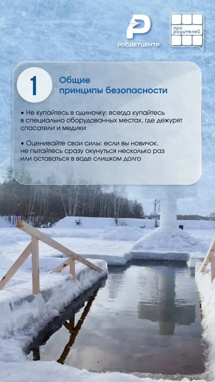 ✍Не знаете с чего начать? Не волнуйтесь! Наша команда подготовила для вас полезные карточки с основными правилами безопасного купания в Крещение. Обязательно ознакомьтесь с ними перед тем, как отправиться к проруби! Они помогут вам избежать неприятных последствий и получить максимум удовольствия от этого особенного дня.