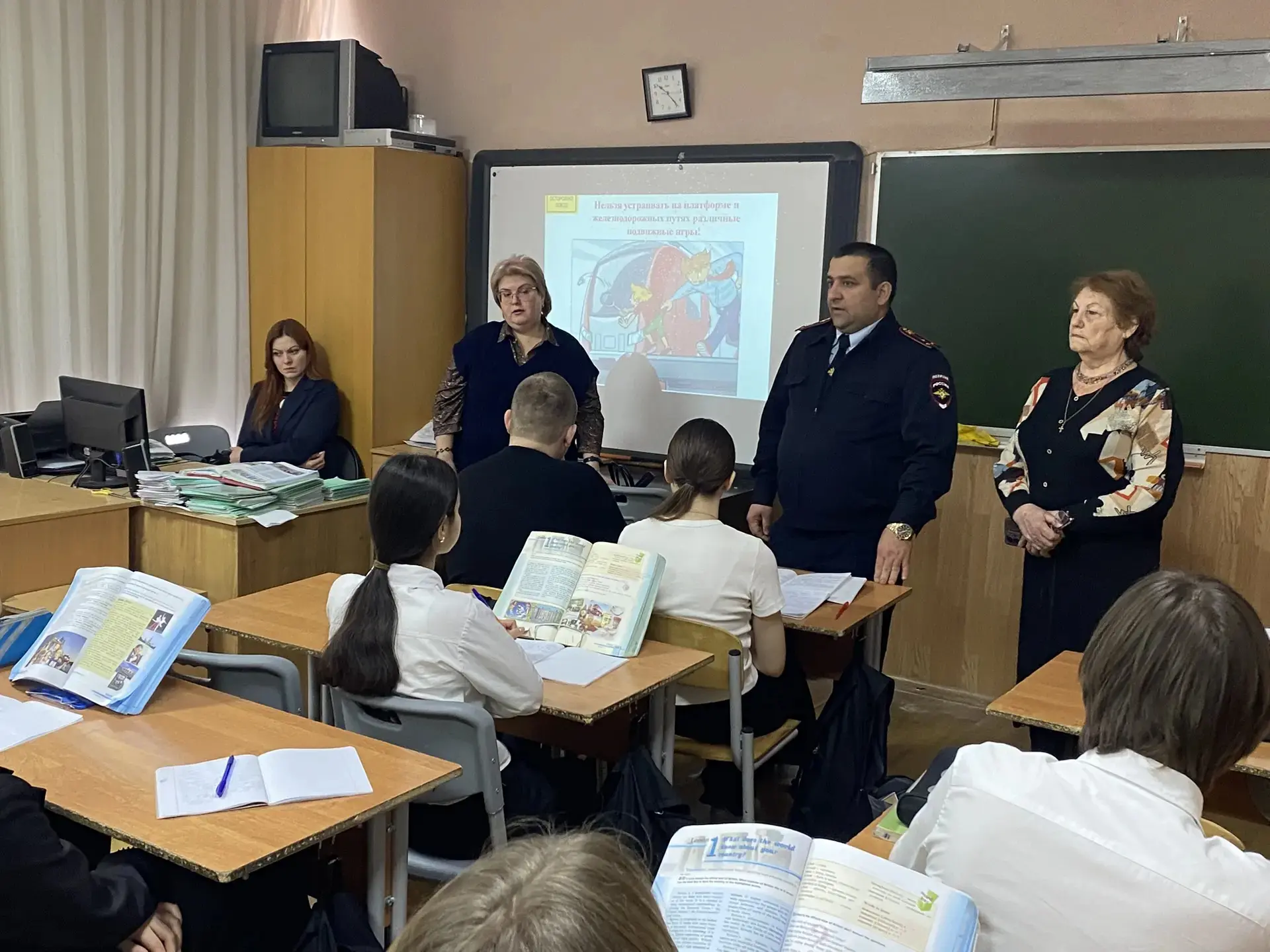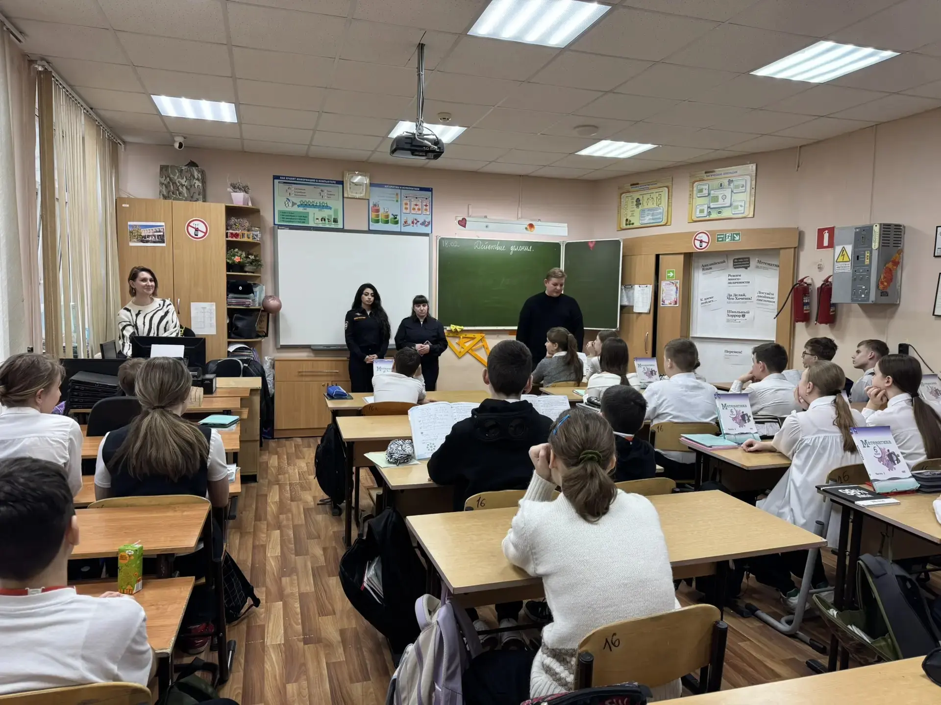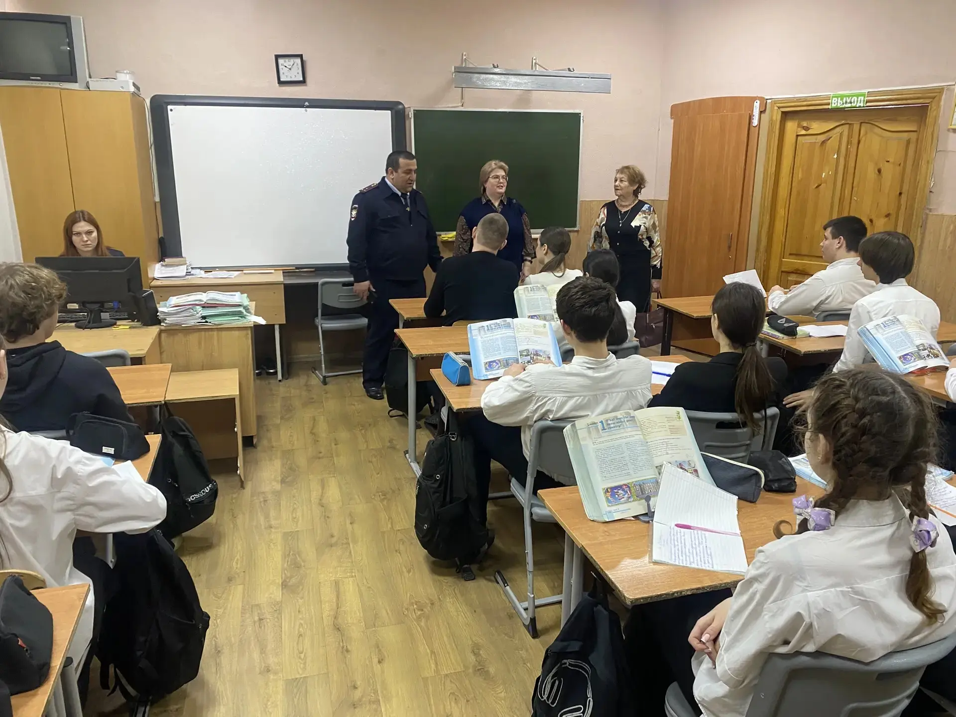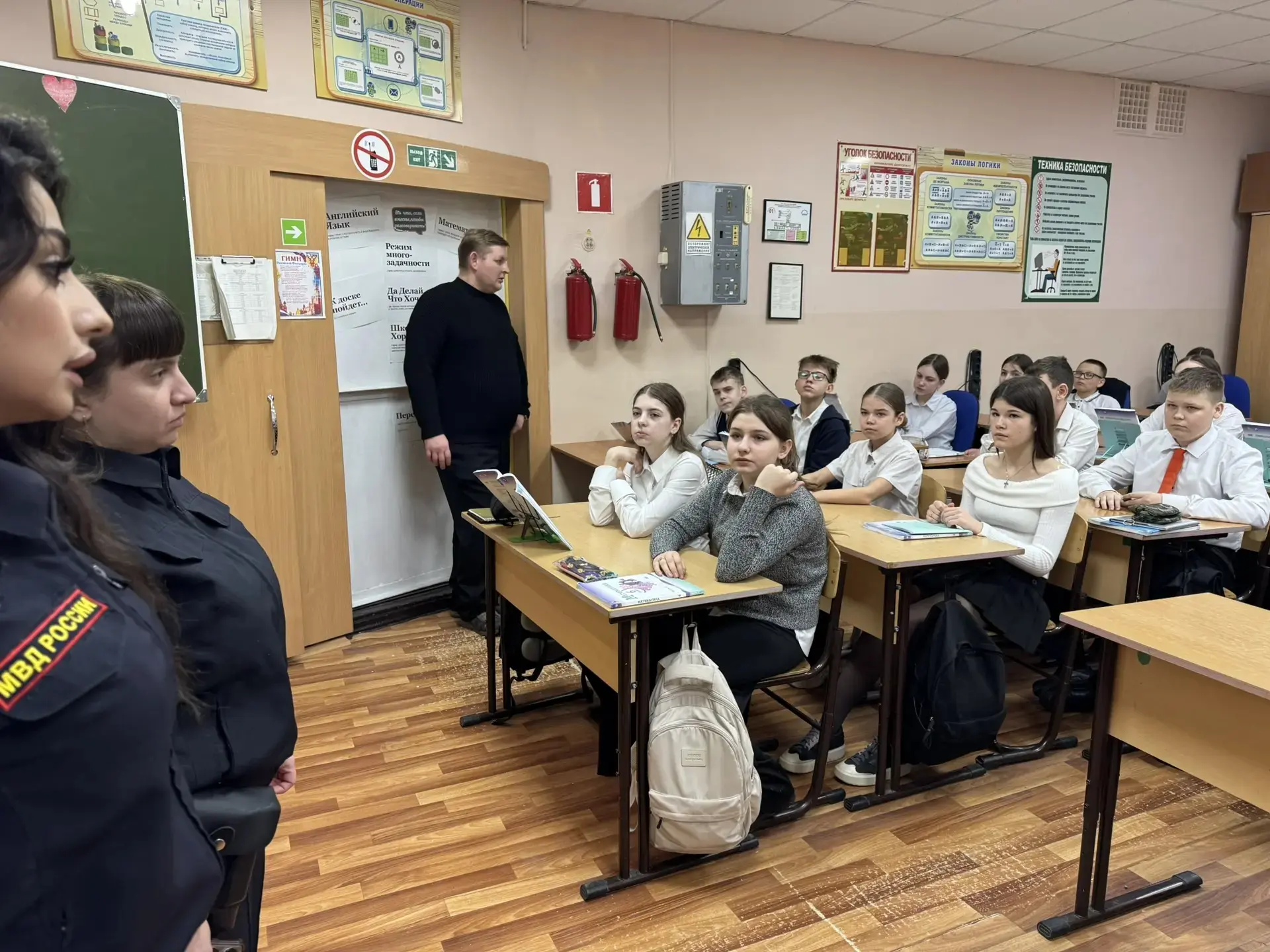 Школу посетили инспектора Отдела по делам несовершеннолетних: лейтенант Рогожина А.В., лейтенант полиции Айропетян Е.М. и младший лейтенант полиции Пьянкова И.С.