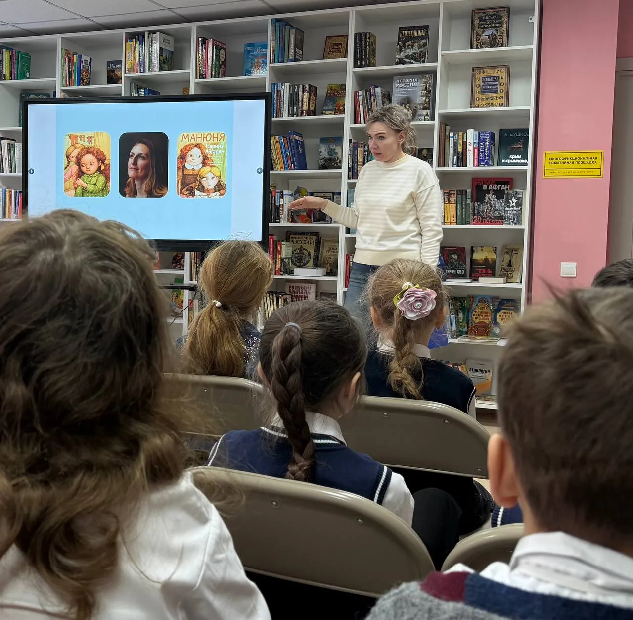 Сегодня 3 «З» класс совершил увлекательное литературное путешествие в библиотеку им. М.Ю. Лермонтова. Главной темой встречи стало творчество замечательной писательницы Наринэ Абгарян и её знаменитая книга «Манюня». 📚
