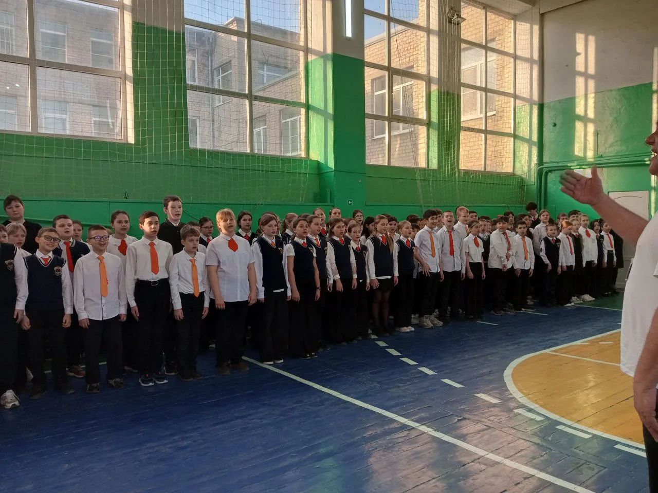 🧡Линейку в первой смене среди 5 классов провел советник директора по воспитанию Андрей Урушев. Линейку во второй смене среди 7 классов провел советник директора по воспитанию Владимир Компаниец.