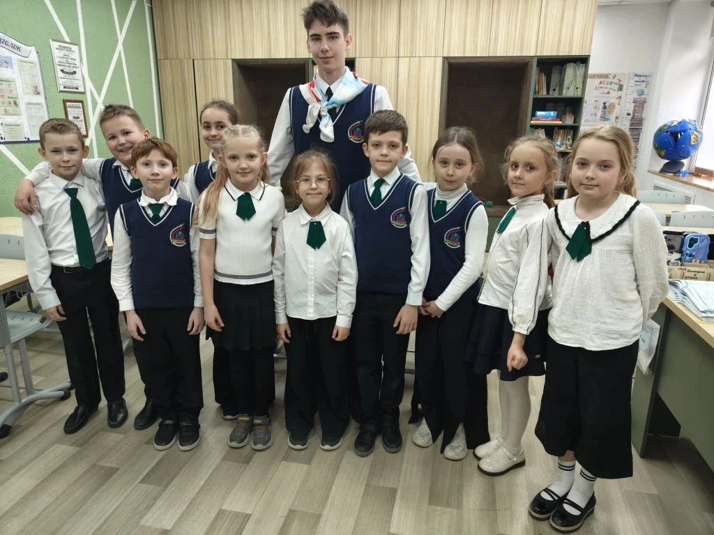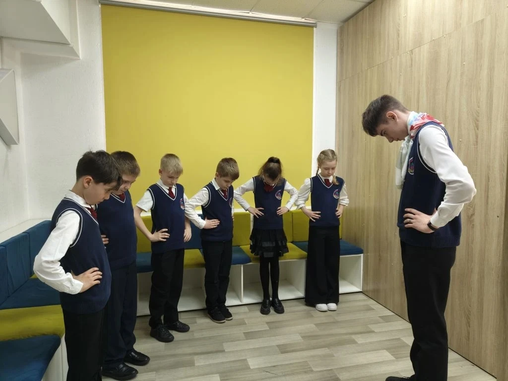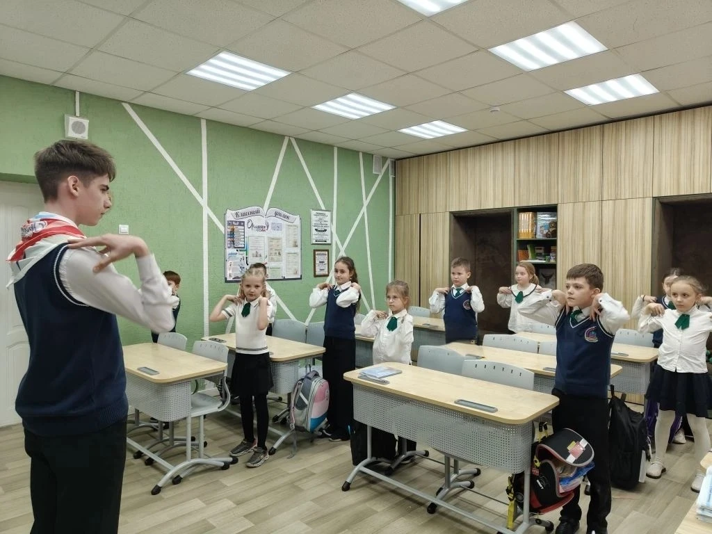 ⚪Советник директора по воспитанию вместе с наставником Орлят превратили обычную школьную перемену в настоящий праздник движения и стихов. Вместо скучных упражнений — знакомые строки любимых детских стихотворений! Ведущий выразительно читал, а ребята повторяли движения, которые иллюстрировали каждую строчку.
