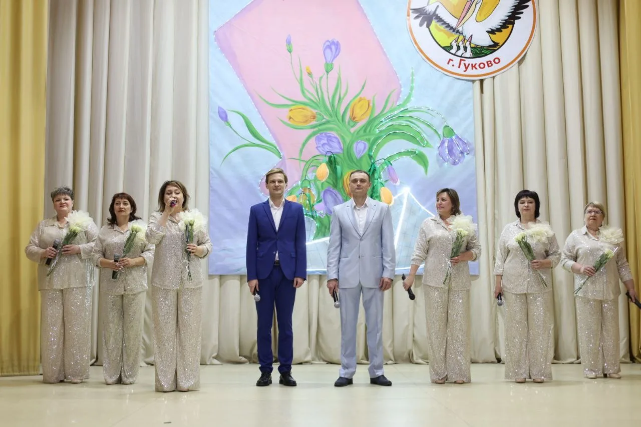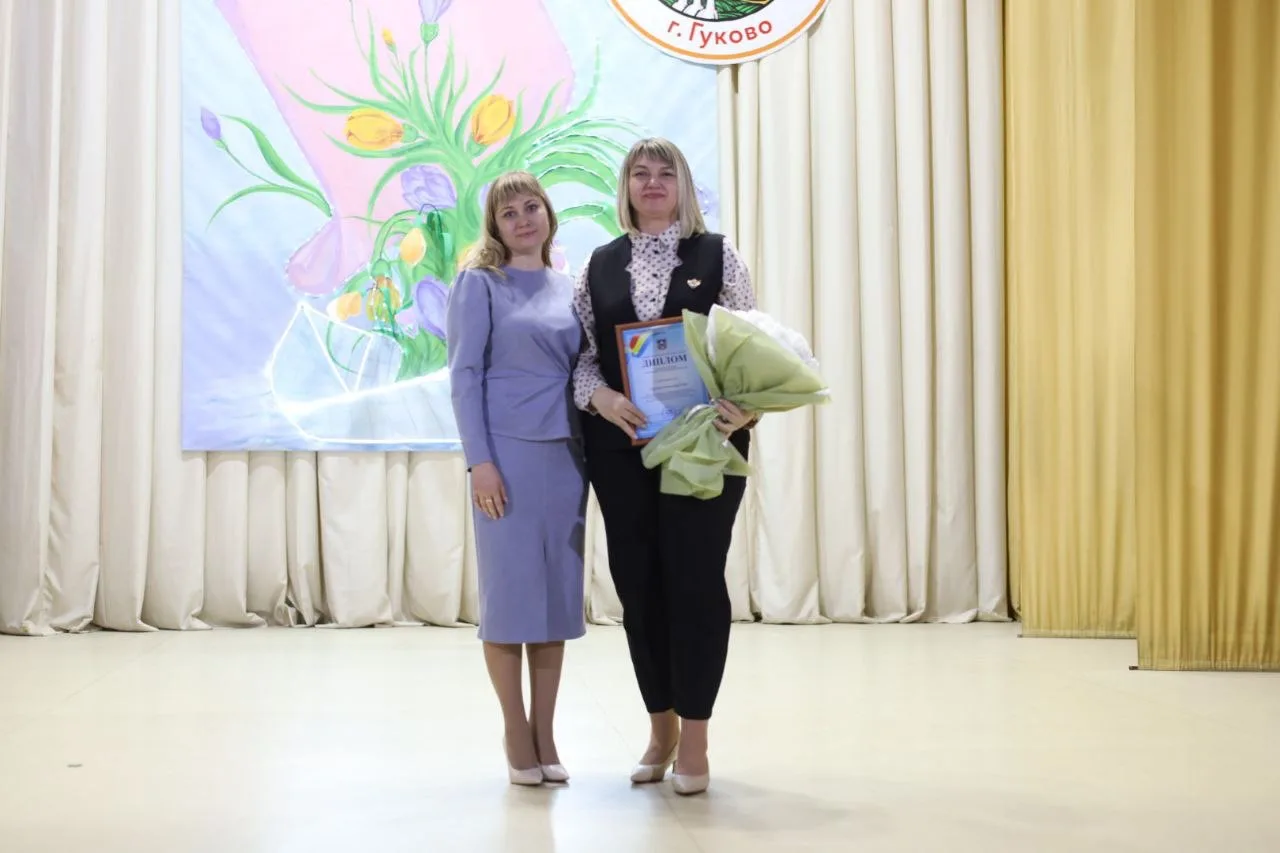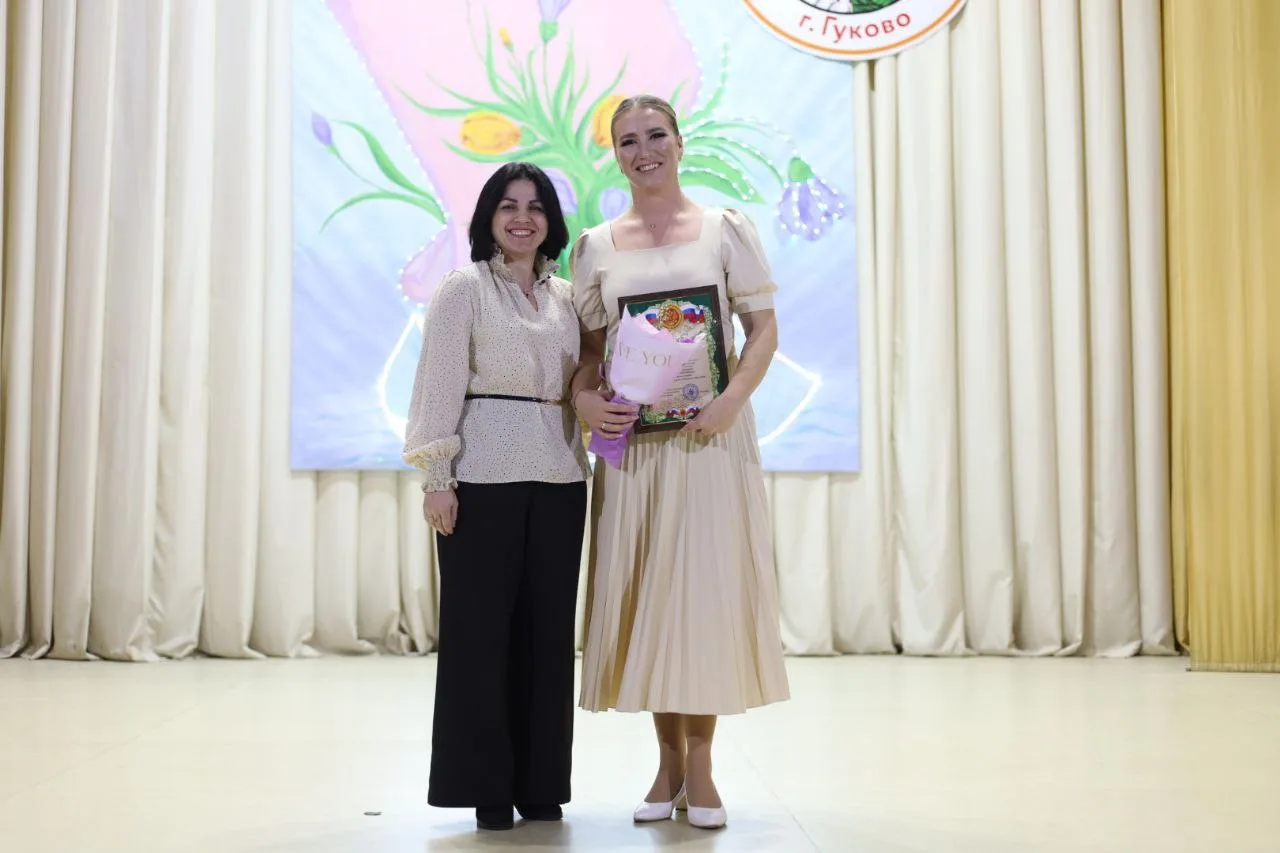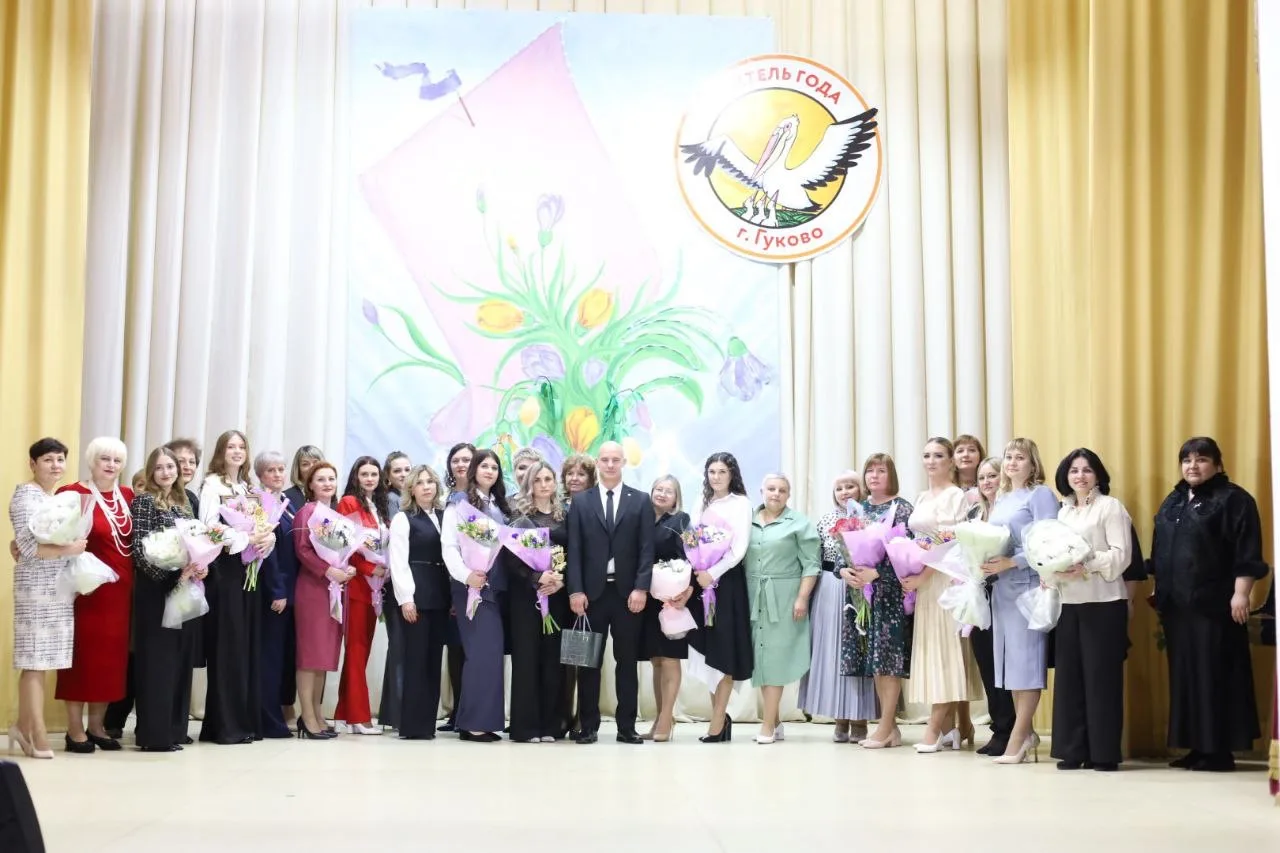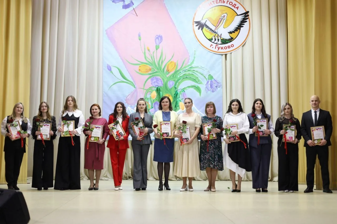 Занавес открывается. На сцене главные герои праздника - лучшие педагоги города Гуково!