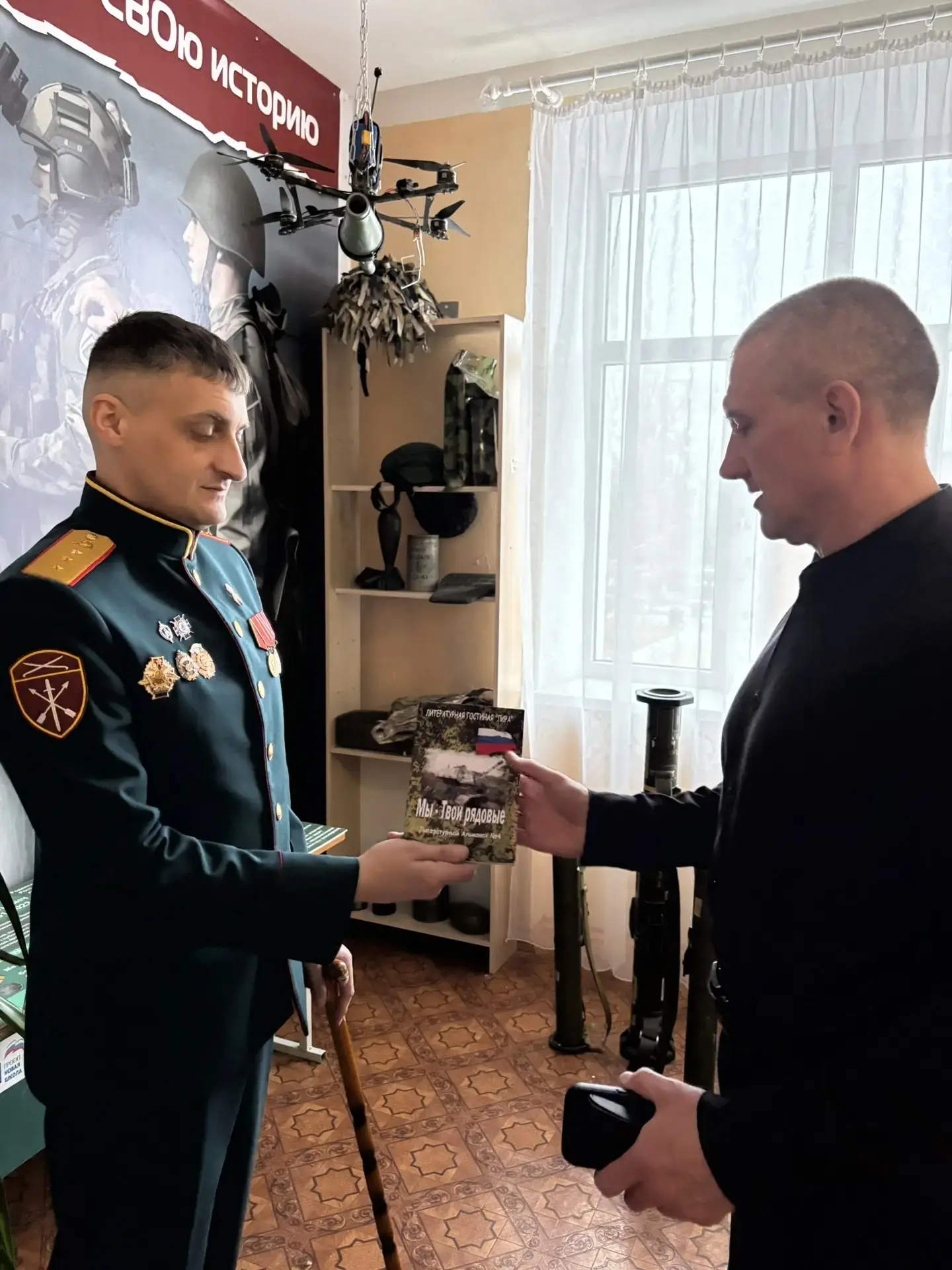 Завершилось мероприятие памятным подарком: гость передал в лицейский фонд книгу «Мы — Твои рядовые» (серия «Литературная гостиная „Лира“»). Сборник стихотворений станет важным экспонатом в уголке боевой славы и будет использоваться на уроках мужества.