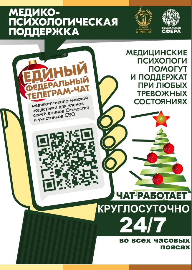 Продолжает свою работу единый федеральный чат Комитета семей воинов Отечества по оказанию медико-психологической поддержки семьям и участникам специальной военной операции (СВО) в круглосуточном режиме.