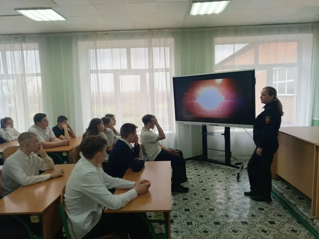 Также в беседе освещались вопросы об административной и уголовной ответственности несовершеннолетних за совершение преступлений и правонарушений. Подросткам было разъяснено, с каких лет наступает уголовная ответственность и какие наказания применяются за совершение преступлений. Также инспектор затронул вопросы поведения обучающихся в школе и общественных местах, уважительного и корректного отношения школьников к учителям, взрослым и сверстникам, отношение к чужому имуществу. Также разъяснила об ответственности для несовершеннолетних за употребление, распространение, приобретение наркотических, табакосодержащих, психотропных веществ.