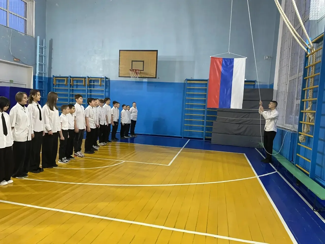 Утро понедельника, 12 января, в нашей школе традиционно началось с поднятия Государственного флага и прослушивания гимна России.