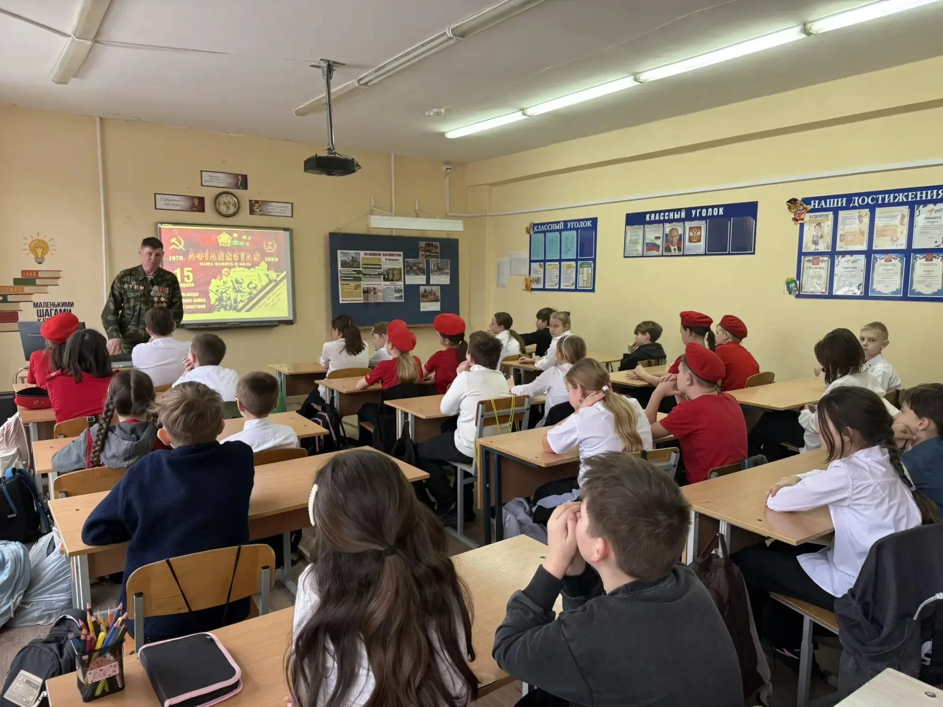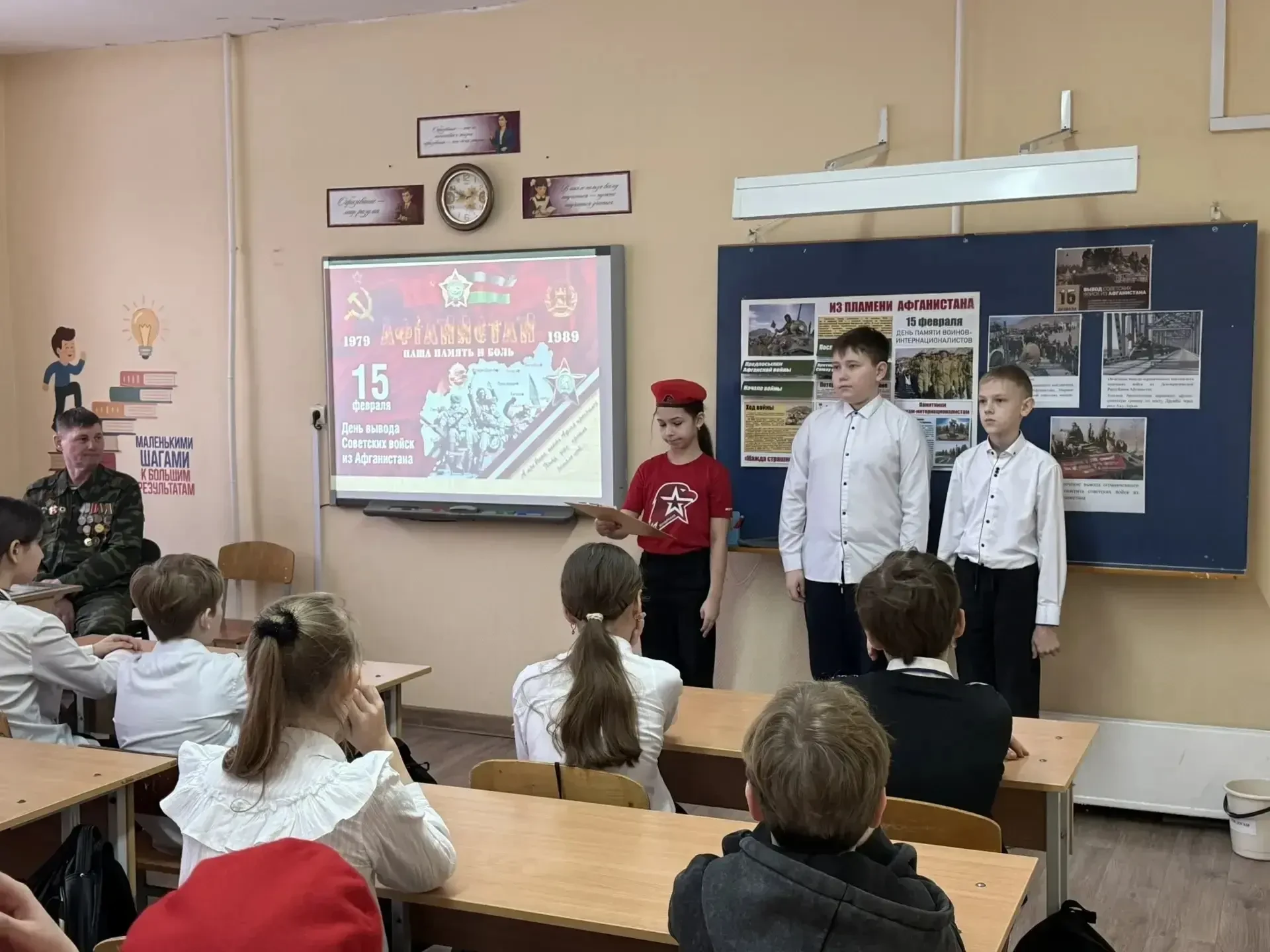 Линейка стала поводом вспомнить и о другом важном дне в истории нашей страны – 15 февраля. В России этот день посвящен памяти воинов-интернационалистов. Дата, связанная с одним из ключевых событий новейшей истории – выводом советских войск из Афганистана. Мы вспоминаем не только тех, кто служил в Афганистане, но и всех военнослужащих и гражданских специалистов, чья отвага и самоотверженность проявились в более чем 30 вооруженных конфликтах и миссиях за рубежом после Второй мировой войны.