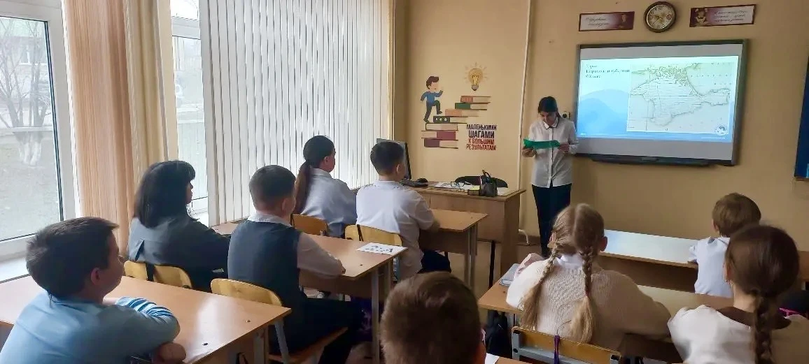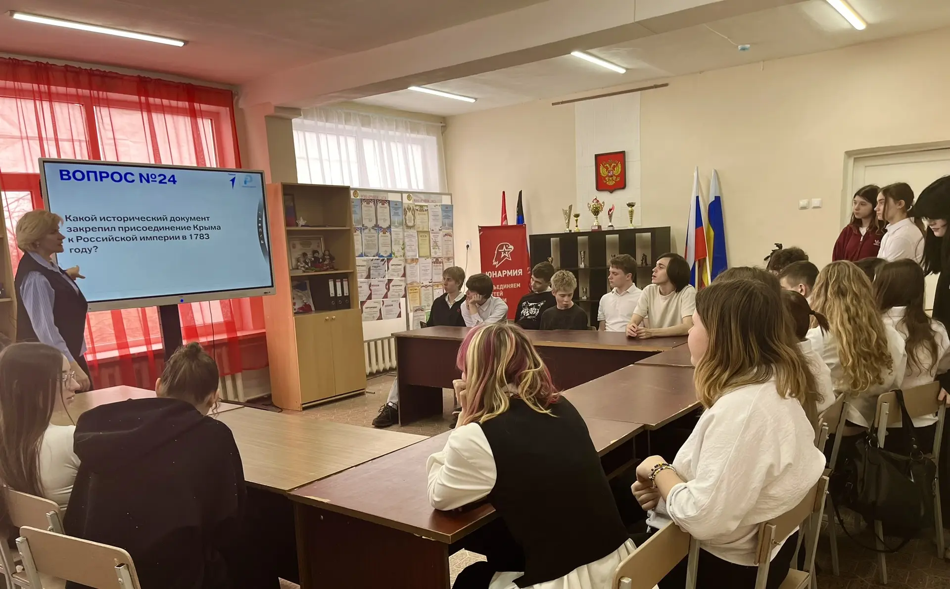 В рамках участия во Всероссийской акции «Одна страна - одна история» в 5-Б классе была организована дискуссионная гостиная с целью обсуждения роли Крыма в русской культуре на тему: «Исторический диалог: значение Крыма для России».