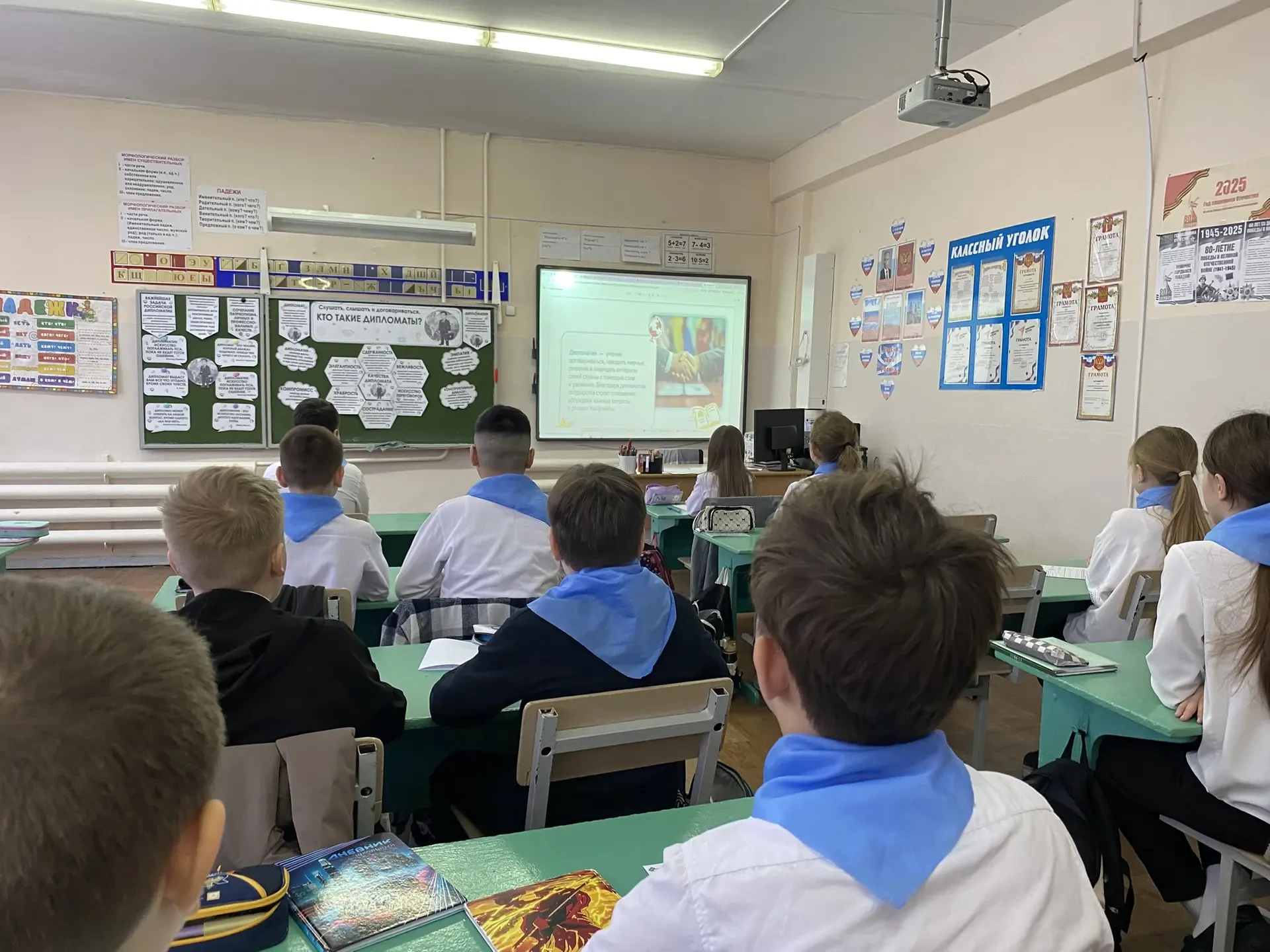 🎯Цель занятия — познакомить учащихся с понятием дипломатии, ролью дипломатов в международных отношениях и их вкладом в защиту интересов страны. Также педагоги стремились развить у школьников навыки конструктивного диалога и умения находить компромиссы.