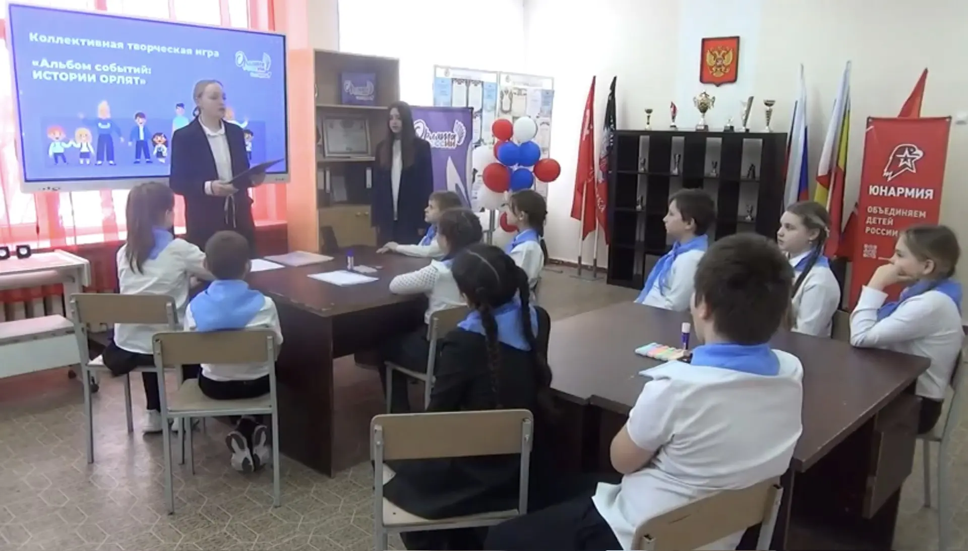 📚✨ Орлята 🌟 4-Б класса 🎓 лицея №5 ✏️ под руководством классного руководителя Новиковой Владлены Дмитриевны и наставника Орлят Алексеенко Анны (7-Б класс) 👩🏫 прошли Всероссийский конкурсный отбор и приняли участие в первом конкурсном испытании - организовали и провели 🗃️ КТИ «Альбом событий: истории Орлят». 🍀