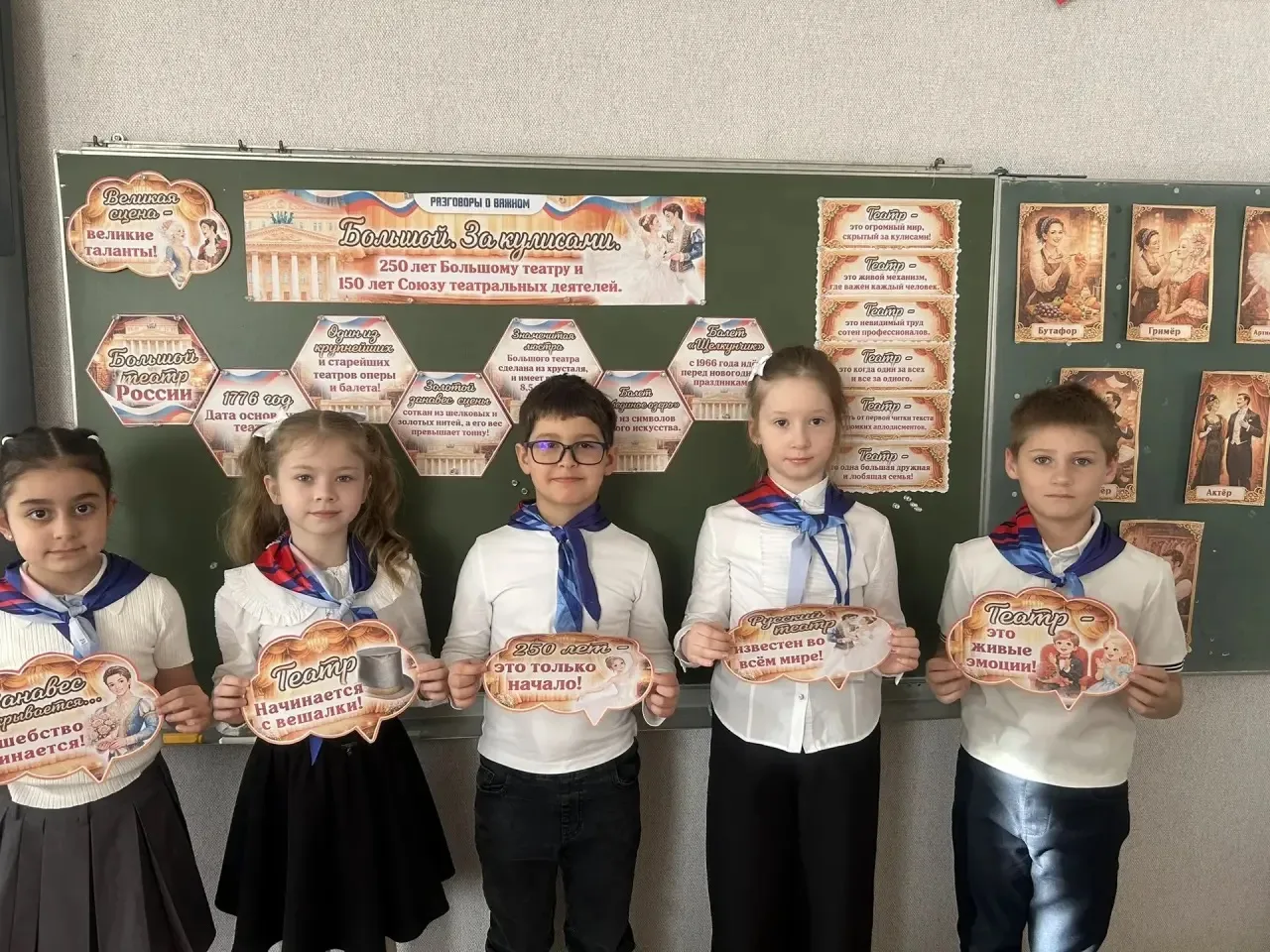 💫 23 марта в школе прошли уроки "Разговоры о важном", на тему: "Большой. За кулисами. 250 лет Большому театру и 150 лет Союзу театральных деятелей России".
