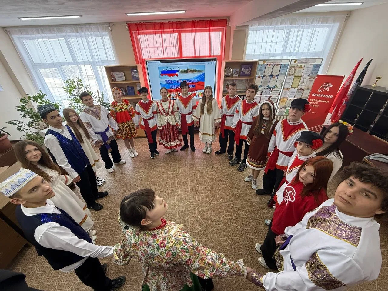 5 февраля 2026 года под руководством советника директора по воспитанию Васильевой Т.А. и руководителя юнармейского отряда Кутько Н.А, юнармейцы "Наследники Победы" приняли участие в флешмобе «Хоровод дружбы», посвящённый открытию Года единства народов России.