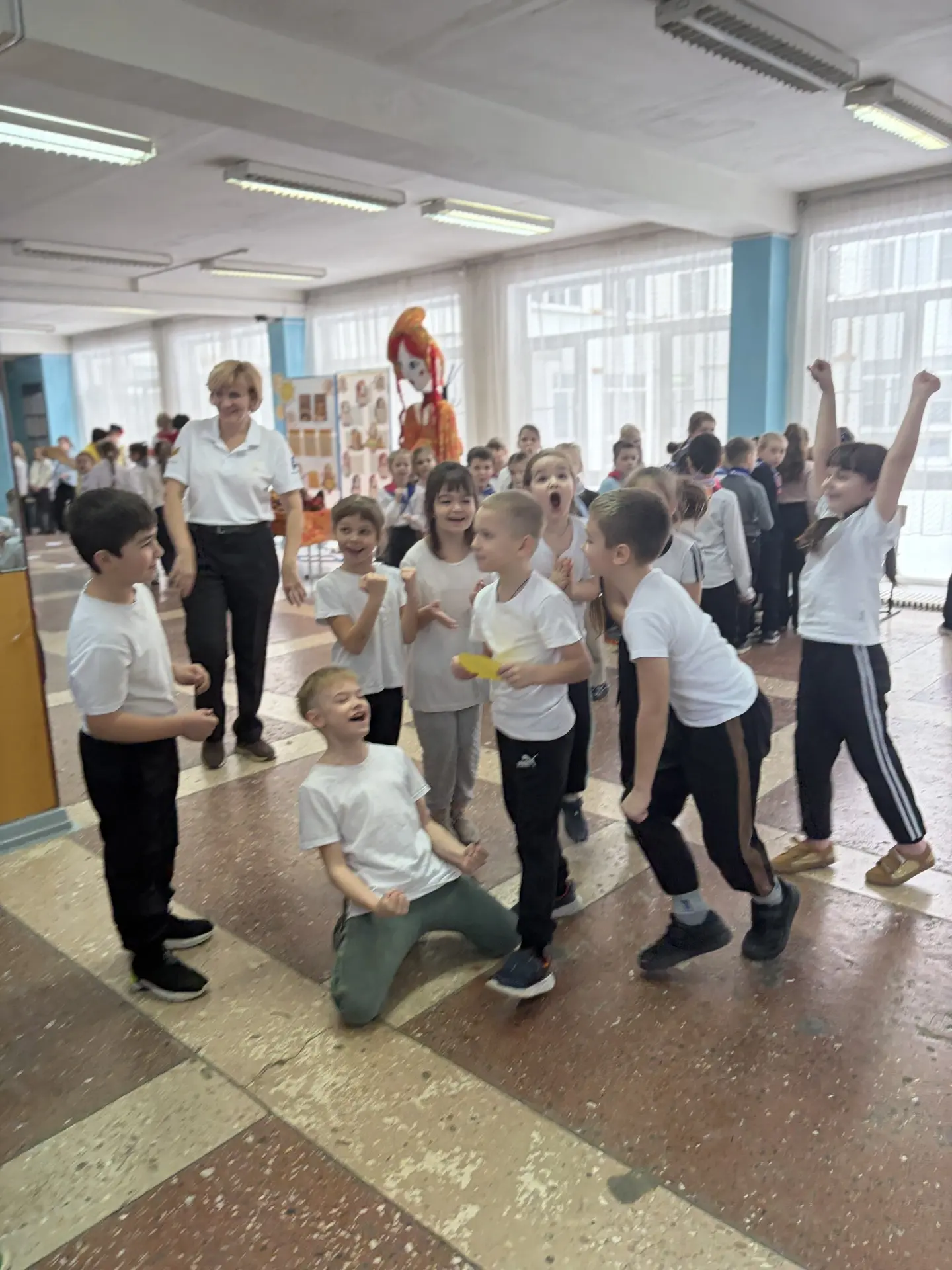 ☝️Активисты 5-Б класса и ведущие праздника из 6-А класса дали старт празднику веселым флешмобом и танцами объединили всех участников мероприятия. 🎶👫Активисты 7-10-х классов подготовили для участников веселые и интересные испытания.