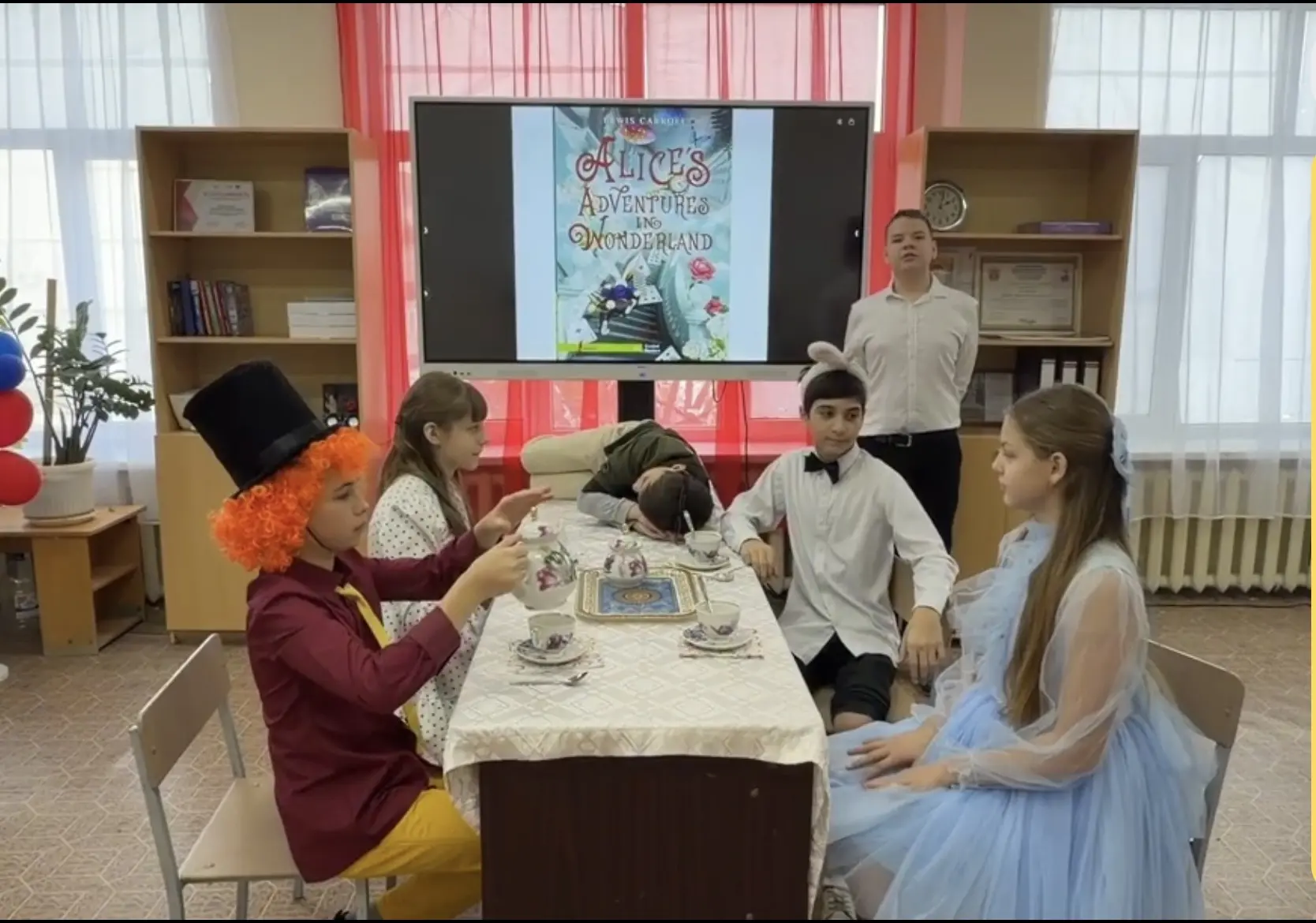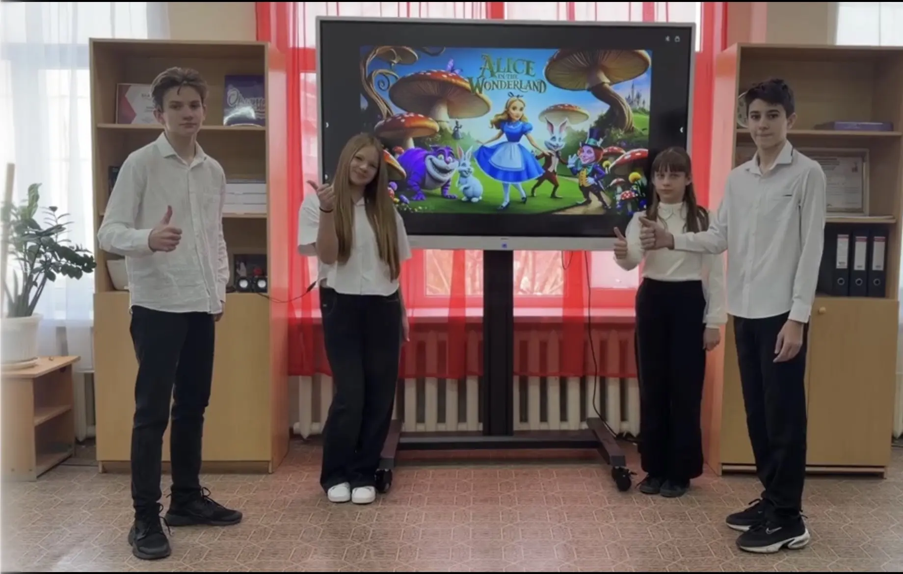Ребята 6-А класса приняли участие в муниципальном конкурсе буктрейлеров на английском языке и записали видеоролик с рассказом о произведении Льюиса Кэррола «Алиса в стране чудес». Полная версия здесь☝️ https://disk.yandex.ru/i/zWzcoYEnbhRZyA