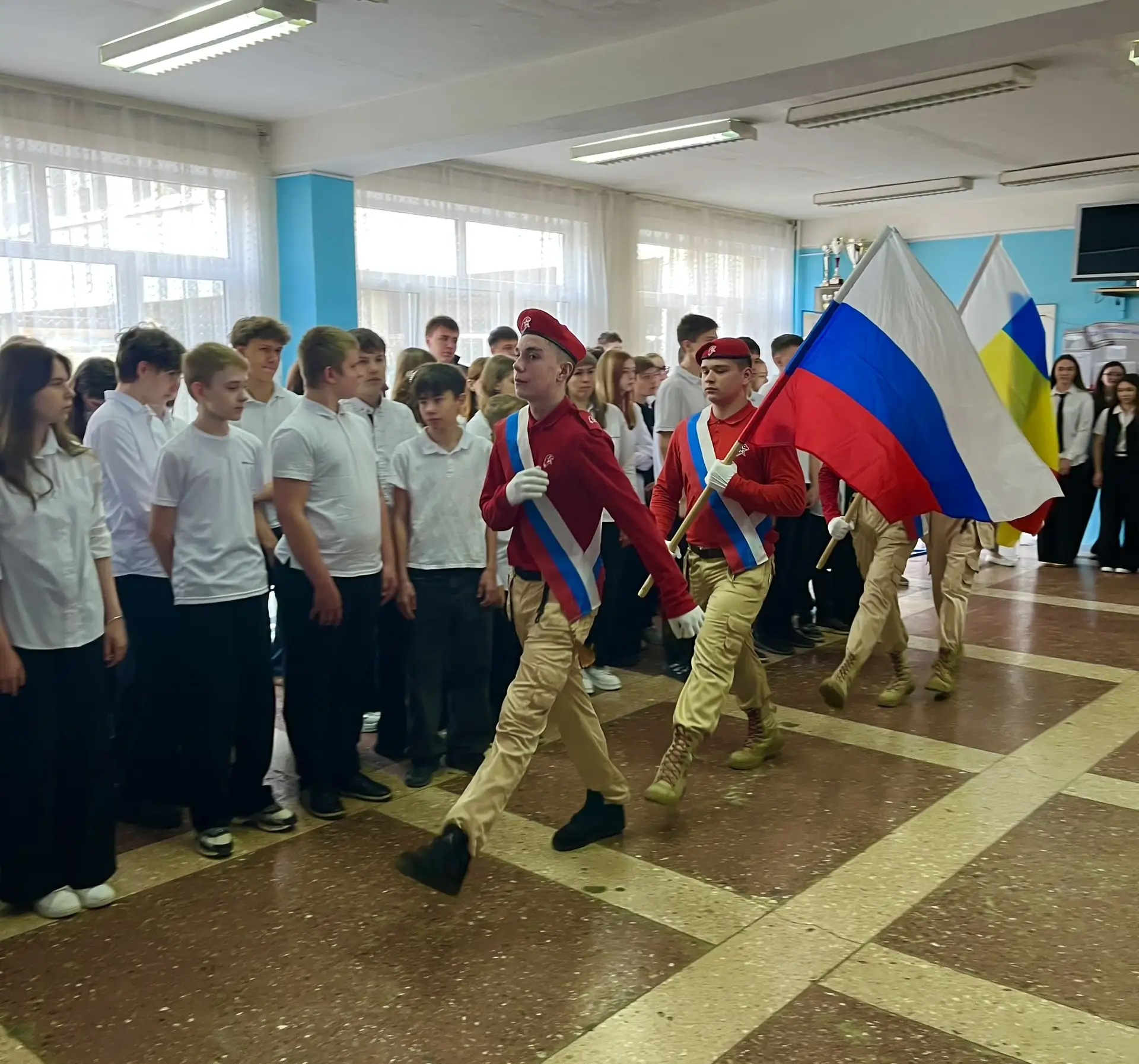 Утро понедельника 23 марта 2026 года в лицее традиционно началось с торжественной линейки, церемонии выноса флага и исполнения гимна Российской Федерации.