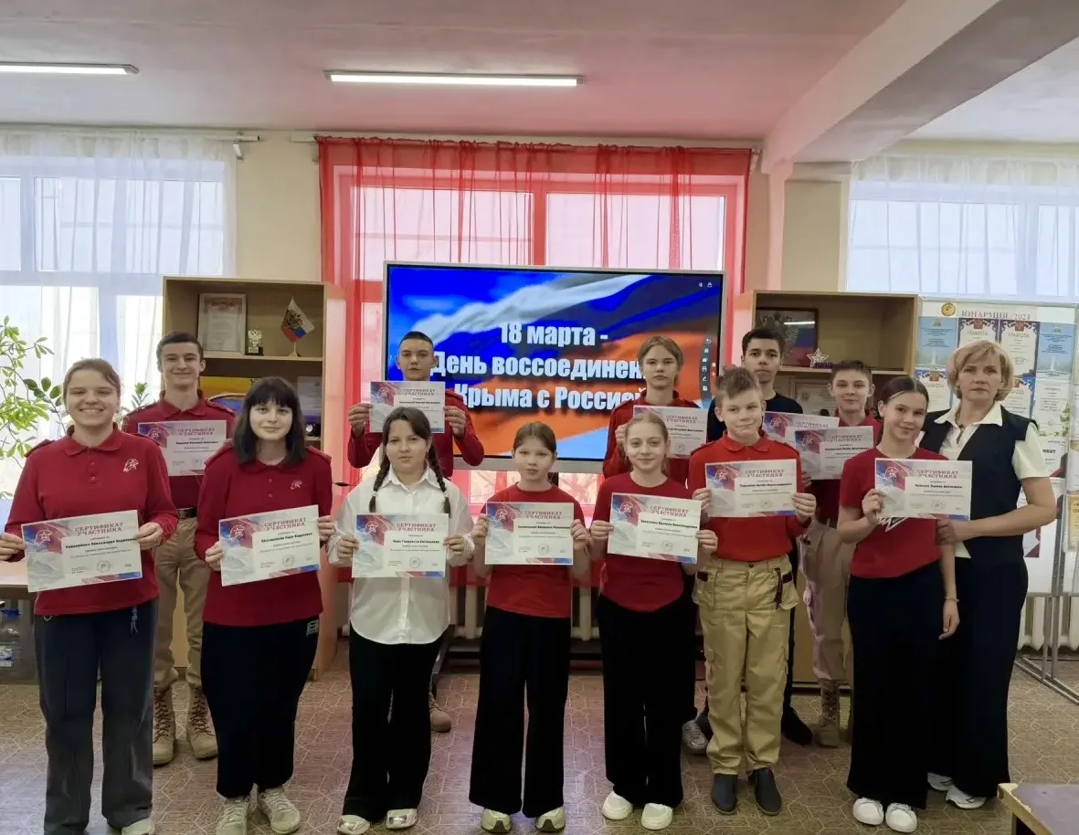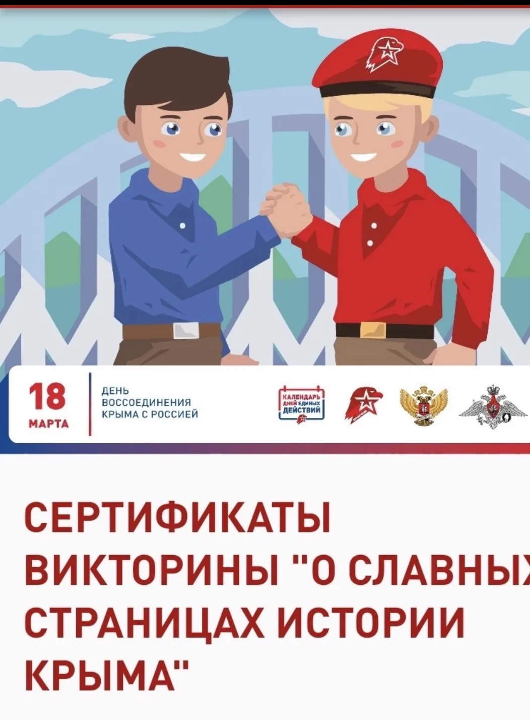 🇷🇺В Главном штабе ВВПОД «Юнармия» подведены итоги Всероссийской викторины «О славных страницах истории Крыма», посвященной Дню воссоединения Крыма с Россией, в которой активное участие приняли юнармейцы отряда «Наследники Победы» МБОУ лицея №5 под руководством Кутько Н.А. и советника директора по воспитанию Васильевой Т.А.