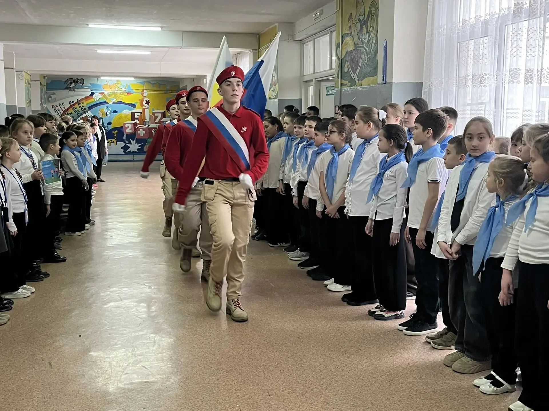 Утро понедельника 2 февраля 2026 года в школе традиционно началось с торжественной линейки, церемонии выноса флага и исполнения гимна Российской Федерации.