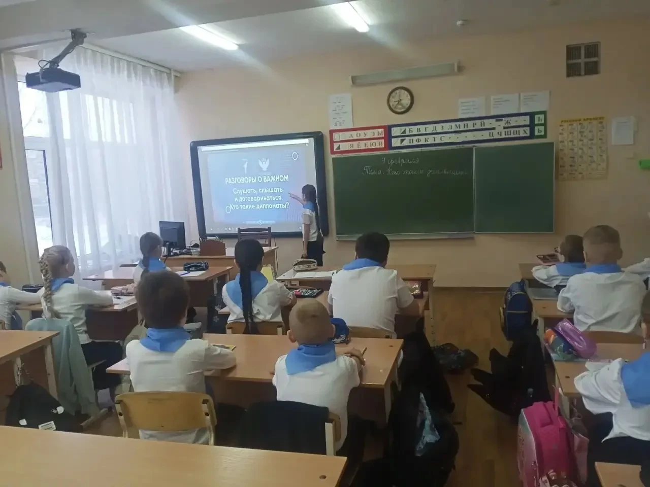 ✅После линейки ребята приняли участие в занятии в рамках федерального проекта «Разговоры о важном» на тему «Слушать, слышать и договариваться. Кто такие дипломаты?». Занятие было приурочено ко Дню дипломатического работника, который отмечается 10 февраля.