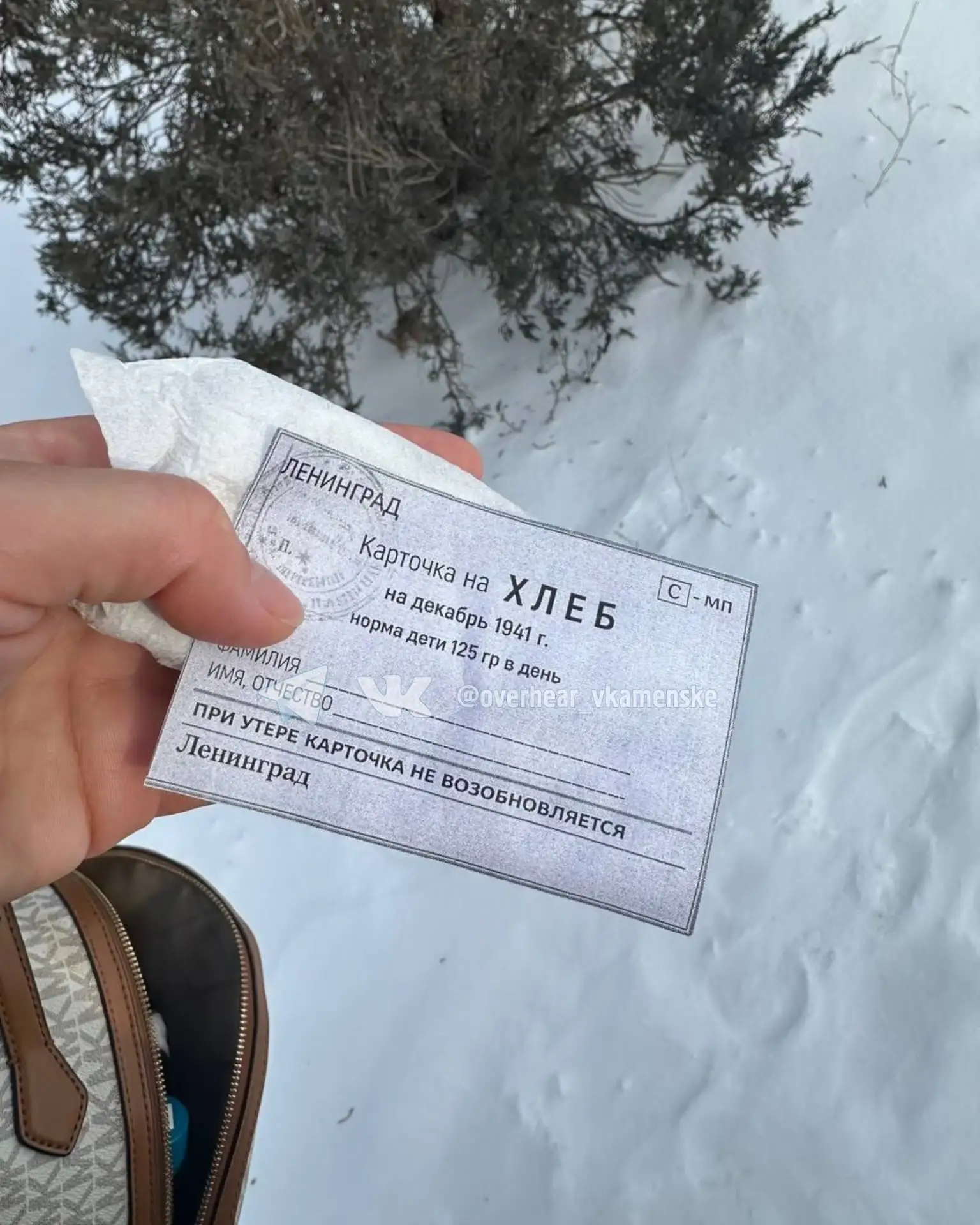 🍞 "Вчера на улице Ворошилова, возле остановки «Библиотека». Мороз, ветер и школьники с розовыми щеками от мороза протягивают руку с кусочком хлеба и карточкой на хлеб. Проходящим мимо прохожим. Тронули до глубины души, такие даты нужно, важно помнить! День полного освобождения Ленинграда от фашистской блокады (1944).