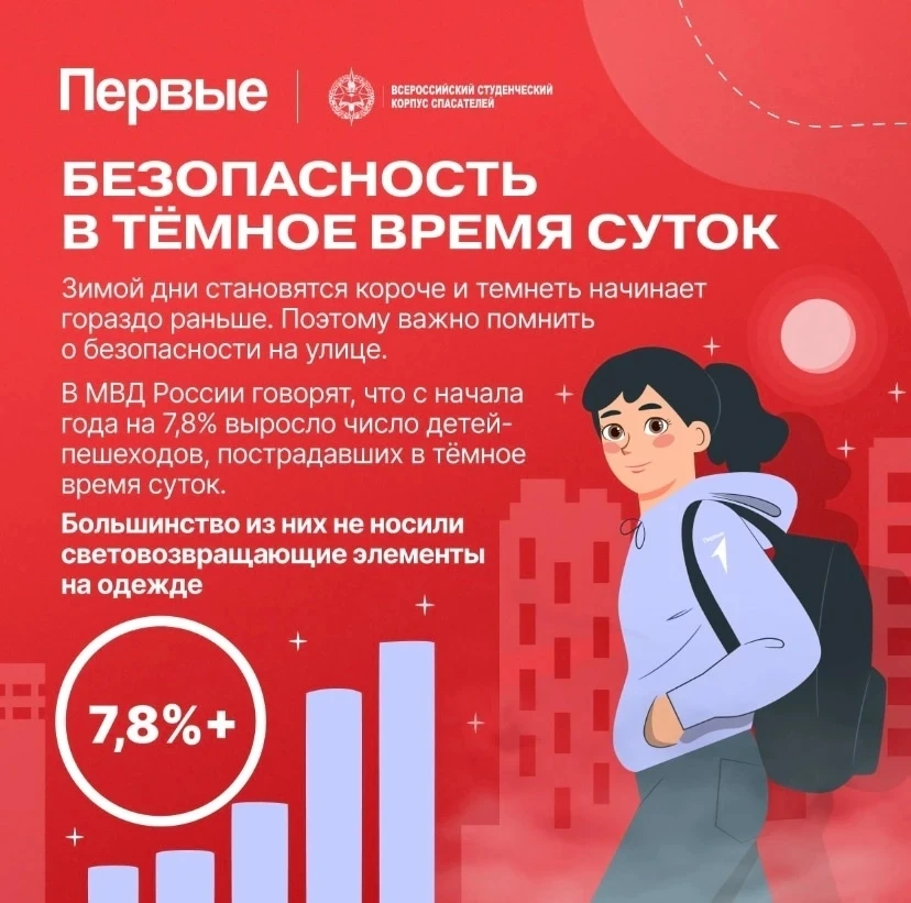 Движение Первых и Всероссийский студенческий корпус спасателей подготовили карточки о том, как правильно вести себя в темноте, чтобы оставаться в безопасности.