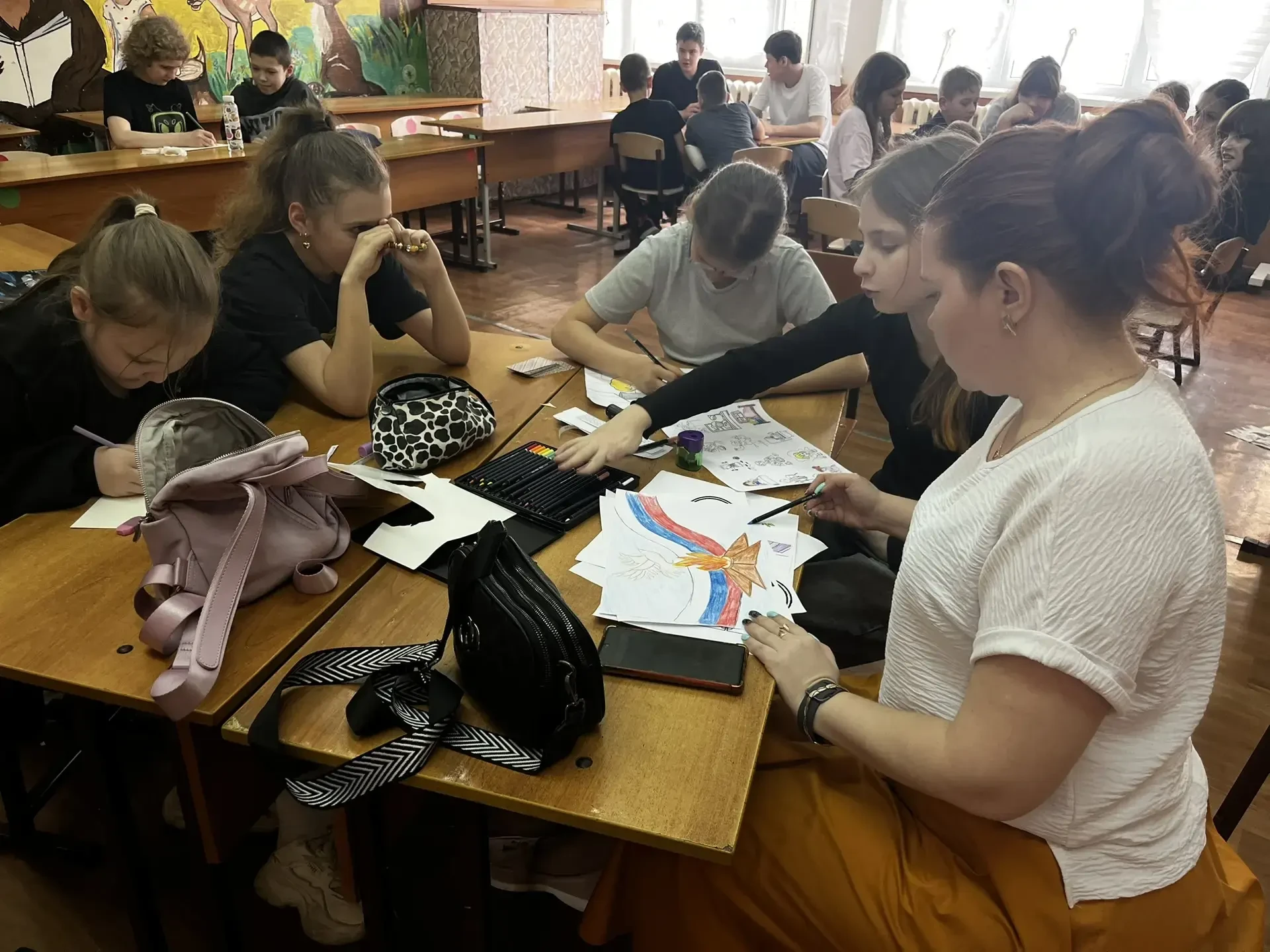 В выставке принимали участие обучающиеся школы всех возрастов, юные "Орлята России", представители движения Первых, юнармейцы.