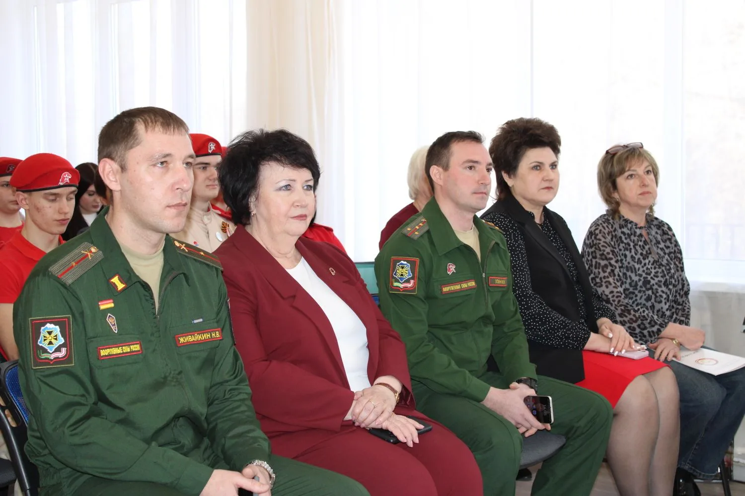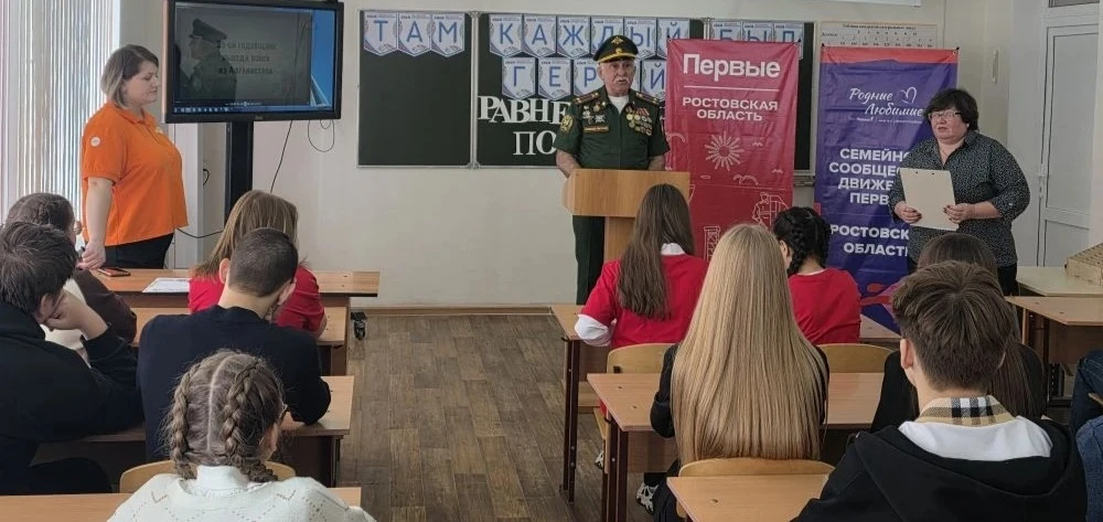 🇷🇺🌟💫 В мероприятии участвовали почётные гости: Узун Иван Николаевич, начальник штаба регионального отделения ВВПОД "ЮНАРМИЯ" Ростовской области, Туркатова Елена Ивановна, заместитель Главы Администрации города Новошахтинска по социальным вопросам, Живайкин Никита Васильевич, младший лейтенант, начальник первого отделения военкомата города Новошахтинска и Родионово-Несветайского района, Бахтинова Татьяна Петровна, начальник Управления образования Администрации города, Журавлева Елена Николаевна, начальник Новошахтинского учебного центра регионального отделения Общероссийской общественно-государственной организации "Добровольное общество содействия армии, авиации и флоту России".
