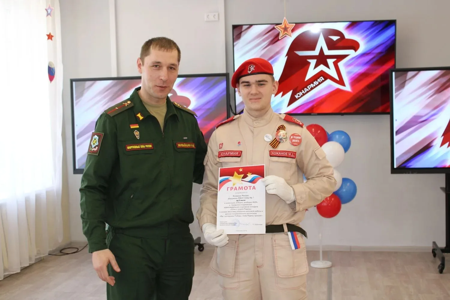 🇷🇺 В мероприятии приняли участие одни из самых активных юнармейцев нашего города, среди которых юнармейцы отряда "Патриот" школы №7 Кожанов Михаил, Ситников Александр, Алейников Дмитрий.