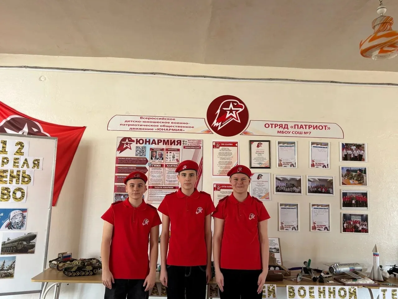 В первый день юнармейских каникул юнармейцы отряда "Патриот" школы №7 Кузьменко Иван, Седова Алиса, Чебаков Егор, Гончарова Евгения, Кирносов Дмитрий приняли участие в традиционных занятиях по военно-патриотическому воспитанию, тактике и обороне, основам военной службы, тимбилдингу и авиамоделированию.