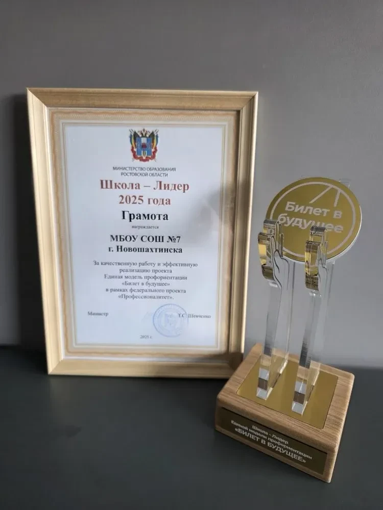 🏆💫30 марта в Историческом парке «Россия – моя история» прошла торжественная церемония награждения лидеров рейтинга школ по реализации Единой модели профориентации «Билет в будущее». Школа 7 была награждена грамотой Министерства образования ШКОЛА-ЛИДЕР 2025 за качественную работу и эффективную реализацию проекта «Билет в будущее» в рамках федерального проекта «Профессионалитет»