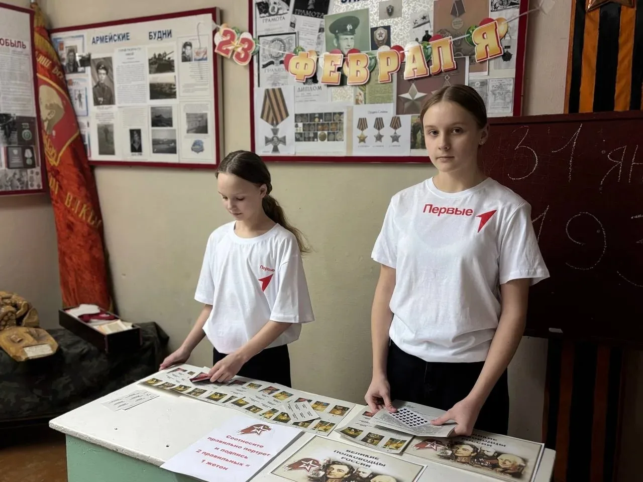 💫✅В школьном музее на станции "Полководцы" юнармейцы должны были соотнести портреты российских полководцев с их фамилиями.