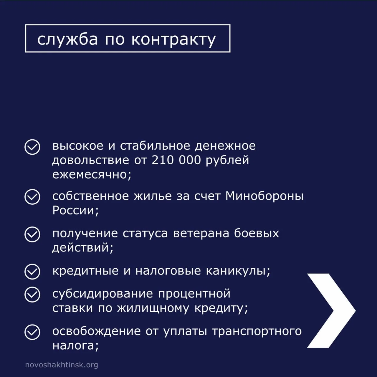 Для консультаций по вопросам заключения контракта обращаться в Военный комиссариат по городу Новошахтинску и Родионово-Несветайскому району: улица Харьковская 109. ☎️ 8 (863 69) 2-28-36