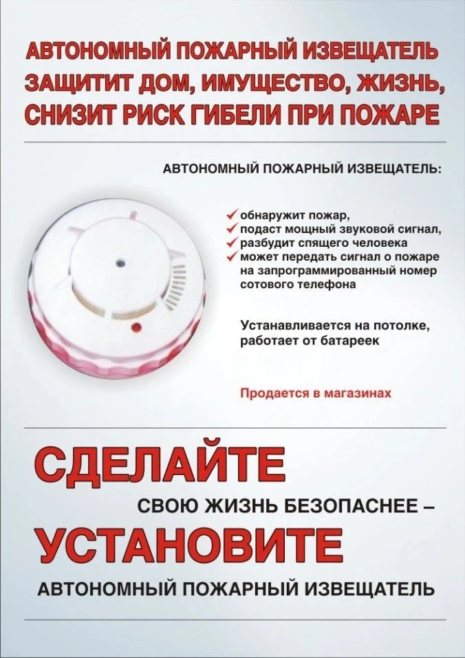 Автономный пожарный извещатель защитит дом, имущество, ЖИЗНЬ, снизит риск гибели при пожаре.