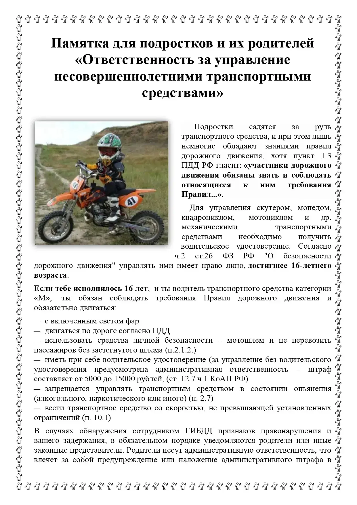 Предостережение несовершеннолетним мотоциклистам и их родителям