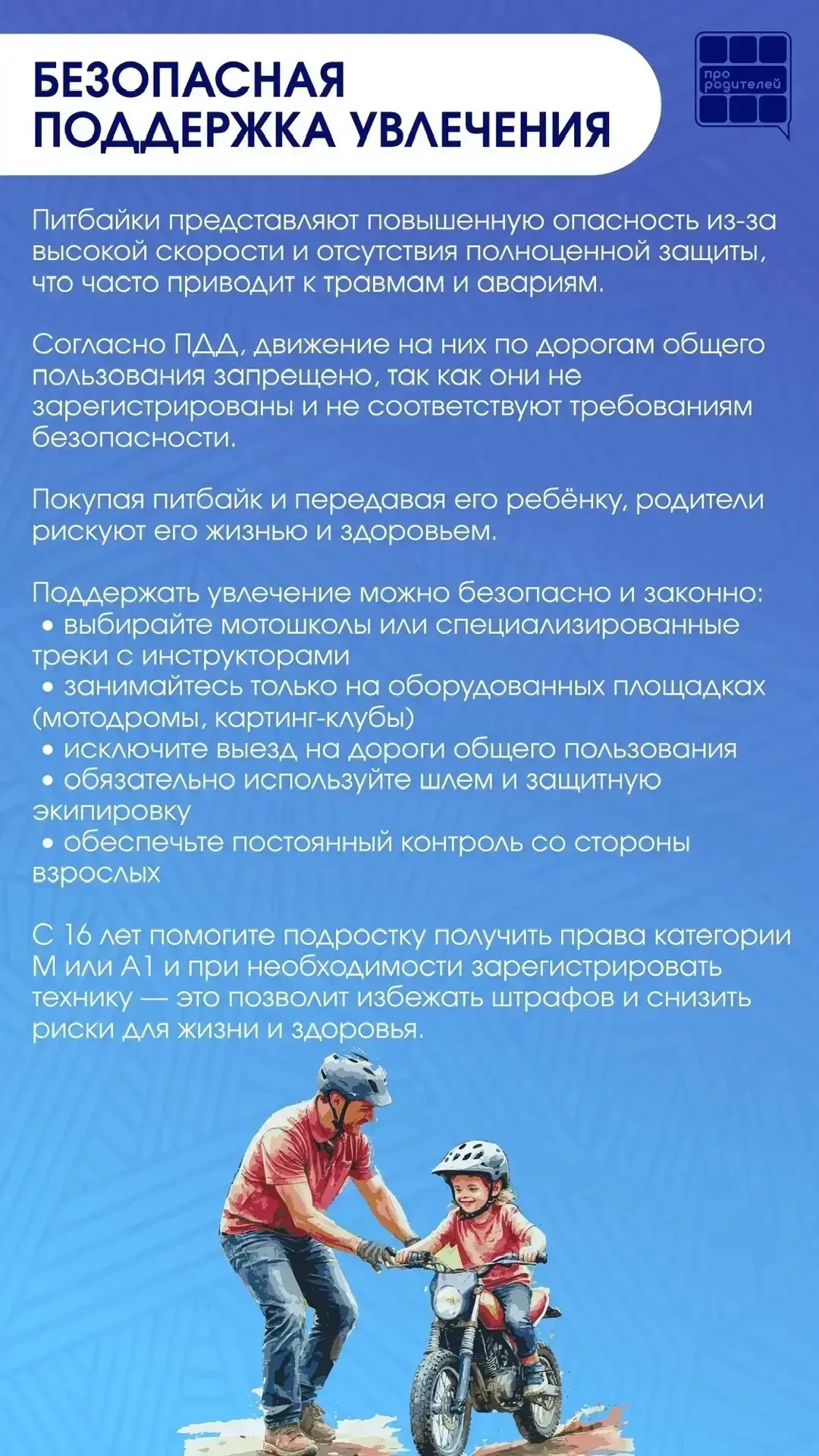 Уважаемые родители и несовершеннолетние водители! Важно понимать, что управление мотоциклом требует специальных навыков и опыта. Необходимо помнить, что соблюдение правил дорожного движения и уважение к другим участникам является залогом безопасности на дорогах.