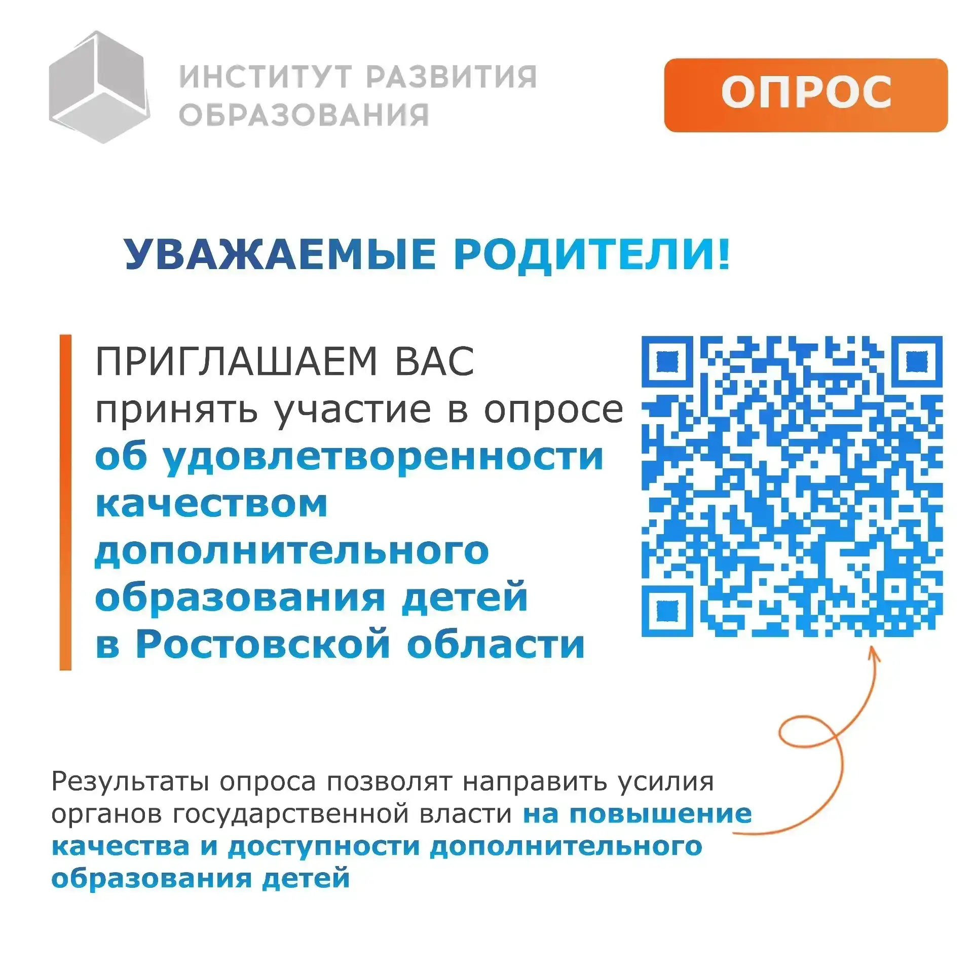 Просим пройти опрос об удовлетворенности качеством дополнительного образования детей в Ростовской области: https://forms.yandex.ru/u/6992b60c84227ca874d424aa