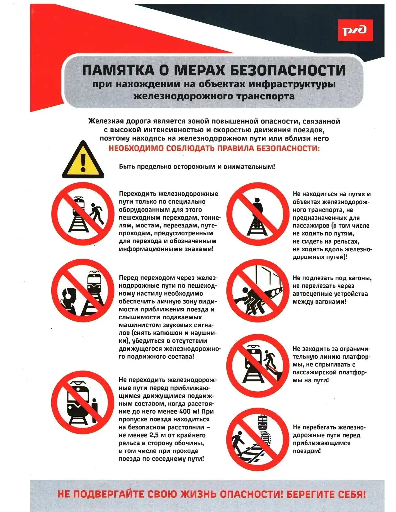 - Не оставляйте детей без присмотра на объектах железнодорожной инфраструктуры.