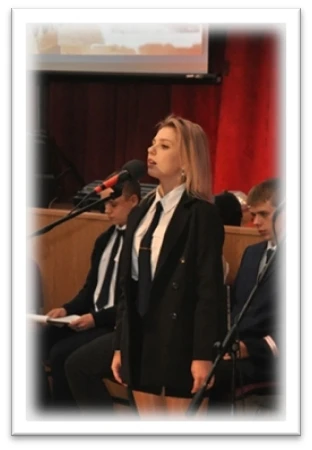 Настя- талантливая красавица, без которой не обходилось ни одно творческое мероприятие . Прекрасно поет, победительница различных конкурсов, участница студенческой весны, международных научно- практических конференций. Это яркая личность на небосклоне техникума, одна из лучших студентов.