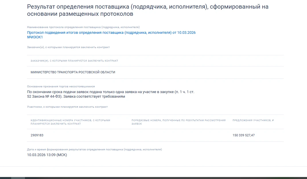 Закупка приостановлена по жалобе ФАС. На данный момент идет рассмотрение жалобы.